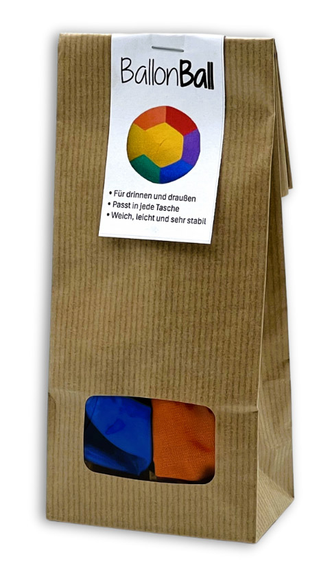 Leicht wie ein Luftballon, stabil wie ein Ball – und im Handumdrehen in der Hosentasche verstaut! Was für ein wunderbares Spielzeug, der fröhlich-bunte BallonBall. Einfach einen Luftballon in die Baumwollhülle stecken, aufblasen, verdrehen und unter die Öffnung schieben – los geht das fröhliche Ballspiel. Drinnen, draußen oder sogar im Wasser, mit dem Ballonball lässt es sich einfach überall ganz herrlich ausgelassen spielen. In der Berührung und Haptik ist der BallonBall sehr weich und zart. Und zugleich ist er sehr viel stabiler als ein Luftballon, da er gut in der Baumwollhülle geschützt ist. Sollte einmal ein Luftballon platzen, macht das keinen Lärm und die Gummiteile verbleiben in der Ballhülle.