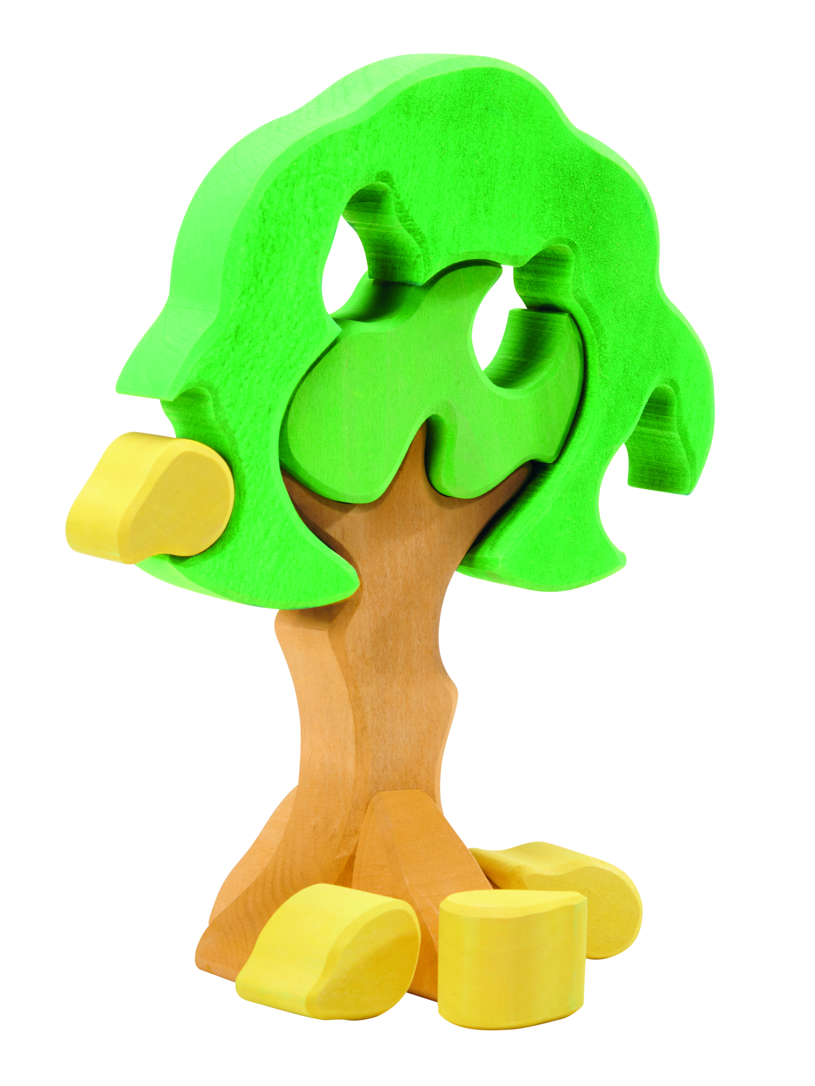 Wunderschönes, hochwertiges Formenspiel aus gebeiztem Lindenmassivholz. Der liebevoll und sorgfältig aus Holz gearbeitete Birnbaum mit seinen reifen, gelben Früchten kann wie ein erstes Puzzlespiel in seine einzelnen Teile zerlegt und wieder zusammengebaut werden. Die einzelnen Holzformen können aber auch für sich einzeln unabhängig von der vorgegebenen Form bespielt werden. Das haptische Wahrnehmen des guten und wertvollen Wertstoffes Holz wird durch die unlackierte Oberfläche sehr authentisch und naturnah erlebbar für unsere Kinder.Hochwertige, sorgfältig hergestellte Holzbausteine und Formenspiele aus guten Naturmaterialien sind ein pädagogisch sehr wertvolles und zeitloses Holzspielzeug für Kinder. Im fantasievollen, ruhigen Spiel der Kinder kann so aus den freien Formen immer Neues entstehen. Ganze Spielewelten, die zusammen mit Holztieren, Figuren und Püppchen, Dekorationstüchern und Naturmaterialien ausgebaut und kreativ erschaffen werden. Entgegen den Spielzeugen, denen ein fester Spielsinn bereits eingeschrieben ist, wird hier das Freie im Spiel der Kinder pädagogisch sanft gefördert und so dem kraftvollen Impuls des Erschaffens aus der eigenen Fantasie Raum gegeben. In diesem Rahmen ist es auch so wichtig, dem Spiel der Kinder den notwendigen Raum und die Ruhe zu gewähren. Nur wo Kinder ganz eintauchen können in ihr Schaffen, kann sich die große Kraft des kindlichen Spiels ganz entfalten. Und unsere Kinder in ihrer Entwicklung stärken und festigen.Und wenn einmal die Zeit gekommen ist, in der Kinder die ersten Holzspielzeuge hinter sich lassen, so sind die wunderschön gestalteten Formenspiele auch im Regal oder einem anderen geeigneten Platz eine warme, liebevolle Reminiszenz an die frühe Kindheit. Und erfreuen das Auge der Betrachtenden durch ihre wohltuende Farbgestaltung und harmonische Formgebung.