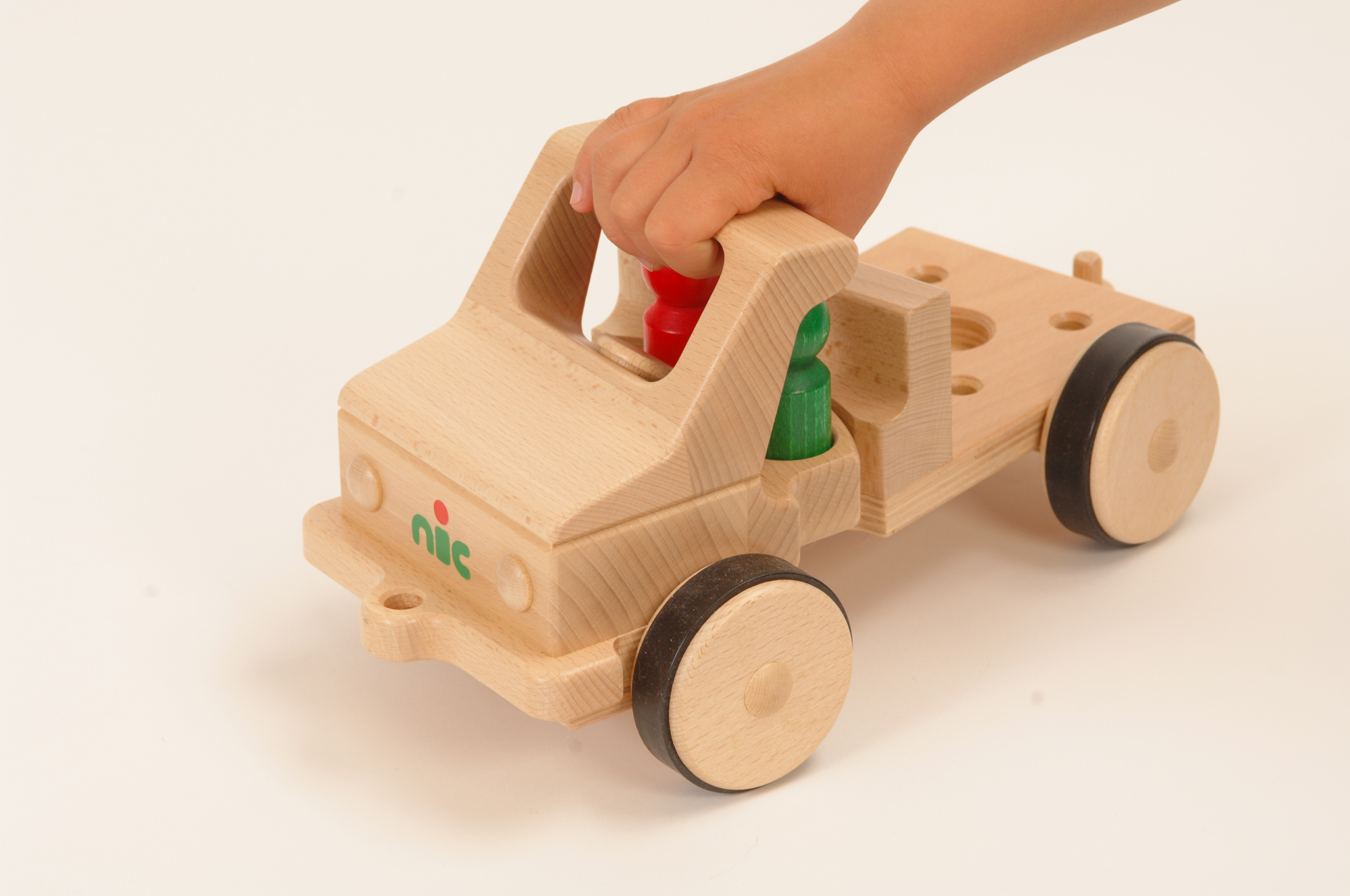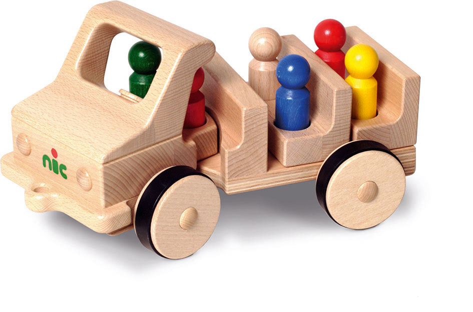 Mit sechs Personen voll beladen darf es losgehen zum gemeinsamen Familienausflug – ob in die Berge, an den See, zum Bauernhof oder ans Meer, alles ist möglich. Voller Vorfreude macht sich unsere Großfamilie auf den Weg in ein neues Abenteuer, welches ihnen die Fantasie unserer Kinder schenkt. Der „Familienausflug“ ist ein idealer Einstieg in die wunderbare Welt der nic creamobile. Die Sitzbänke lassen sich kinderleicht abnehmen, die 6 Figuren ebenso. So finden sie auch im freien Spiel viel Verwendung und sind nicht verschluckbar. Durch stetige Erweiterung ist dieses System erfahrungsgemäß interessant bis zu einem Alter von ca. 7 Jahren. Denn das Grundmodell kann mit vielen Zubehör-Teilen – den Aufsätzen, Anhängern, Sitzbänken und Holzfiguren – beliebig und individuell angepasst werden. Das kürzere Grundmodell ist ca. 36 cm lang und aus massivem Buchenholz in sorgfältiger Handarbeit gefertigt. Der seit Jahrzehnten bewährte Lenkgriff der creamobil-Grundmodelle erlaubt bereits einjährigen Kindern ein kippsicheres Abstützen. Das robuste Buchen-Massivholz und die eingebauten Stahlachsen lassen ein Gewicht von mindestens 70 kg zu. Mit der wunderbaren creamobil-Spielewelt von nic entdecken und erleben Kinder spielerisch nachahmend ihre Welt. Da wird gemeinsam tüchtig geschafft – auf der Baustelle mit allen notwendigen Nutzfahrzeugen wie Baggern, Förderbändern oder einem Hochkran und am Bauernhof mit Traktoren und diversen Anhängern. Verschiedene Aufsätze, Anhängertypen und Umbaumöglichkeiten machen aus den hochwertigen, stabilen creamobil-Fahrzeugen aus massivem Buchenholz echte Alleskönner und sind im Spiel der Kinder sehr vielfältig einsetzbar. So geht es mit dem umgerüsteten creamobil-Grundmodell zum Beispiel auch zum Campingurlaub, auf einen Familienausflug oder eine gemeinsame Busfahrt. Beim kürzeren Grundmodell sind nicht alle Aufbauten einsetzbar bzw. nur zusammen mit dem Einachser-Anhänger einzubauen. Kinder erleben die Welt um sich herum mit großer Neugier und Offenheit. Durch das nachahmende Spiel tasten sich Kinder fühlend und erlebend in diese Welt hinein, verarbeiten Eindrücke und ordnen so gleichsam das Erlebte in ihrem Inneren. Gute, hochwertige Holzspielzeuge, die den Kindern im Spiel möglichst viel Gestaltungsspielraum und Freiheit lassen, fördern so diesen Prozess spielerischen Begreifens. Neben der hochwertigen Verarbeitung und der wertvollen Naturwerkstoffe ist es dieser pädagogische Sinn, der die nic Holzspielzeuge so besonders macht.