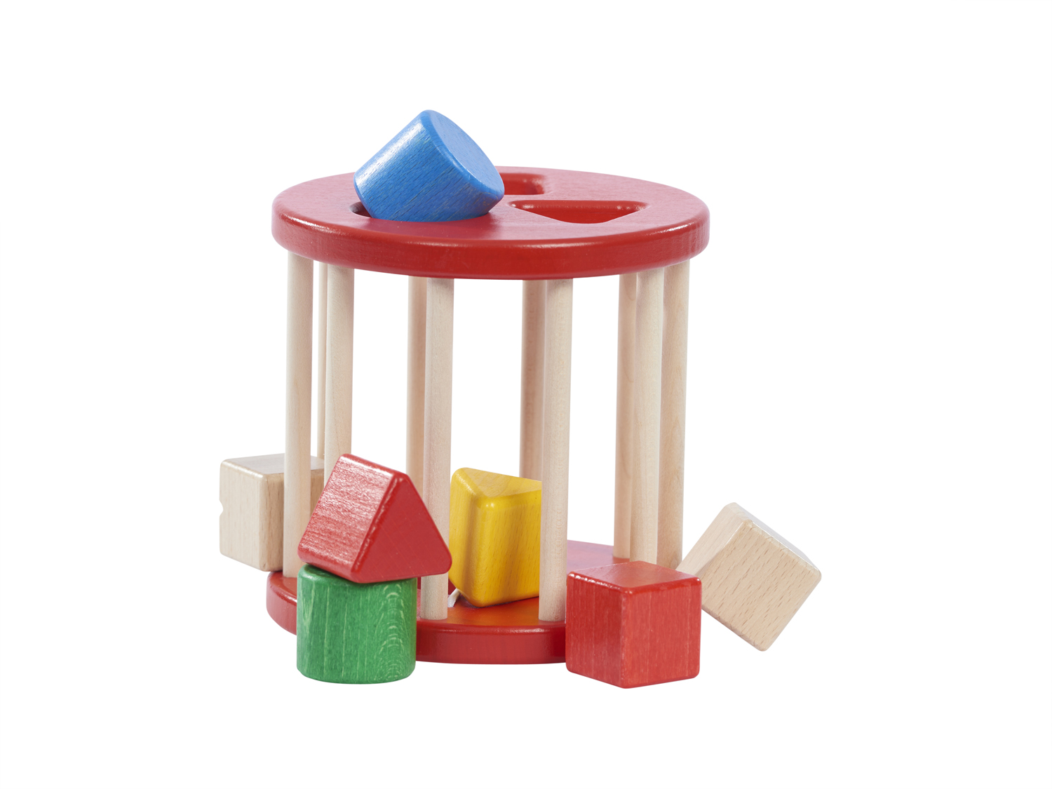 Das große, massive und mit viel Liebe zum Detail hergestellte Holzspielzeug „Formenrolle“ ist ein ganz besonders hochwertiges, pädagogisch wertvolles Baby- und Kleinkindspielzeug. Wir empfehlen es ab ca. einem Jahr. Durch das Stecken der sechs Formenteile, das Ruhe und Konzentration erfordert, kann nach und nach spielerisch die Wahrnehmung für die unterschiedlichen Formen und die Motorik der Hände geübt werden. Das besonders Schöne an unserer großen Formenrolle ist, dass die Steckteile immer mit den Augen wahrgenommen werden können und nicht einfach „verschwinden“. Das vermittelt Sicherheit und Verlässlichkeit. Zusammen mit pädagogisch wertvollen, guten und hochwertigen Spielzeugen erkunden Babys ihre Welt. In diesem Sinne ist es schön, wenn die Materialien, mit denen sie in dieser wichtigen Entwicklungsphase in Berührung kommen, guten und natürlichen Ursprungs sind – denn sie vermitteln ein Gefühl für echte und authentische Werthaftigkeit. Die sechs Buchenholz-Bausteine lassen sich in unserer Formenrolle mit viel Geschick und etwas Geduld einsortieren. Zum Öffnen betätigt man unten durch Zug am Würfel die Gummischnur und schüttelt die Steine nach unten durch die Öffnung hinaus. Beim Rollen entsteht ein interessantes Rassel- bzw. Klappergeräusch. Die weichen, abgerundeten Formen sowie die robuste Mechanik sind besonders für das Spiel der kleinen Kinder von 1 - 3 Jahren geeignet.