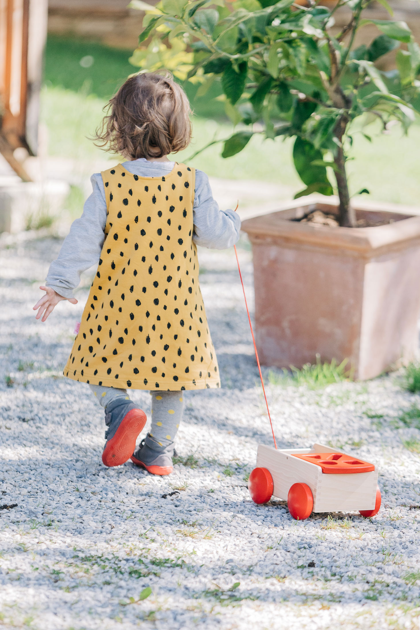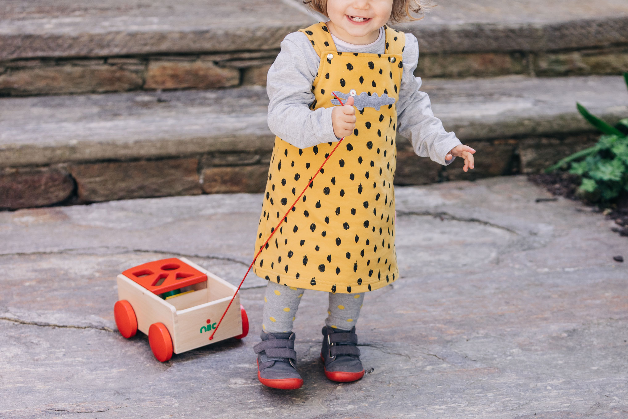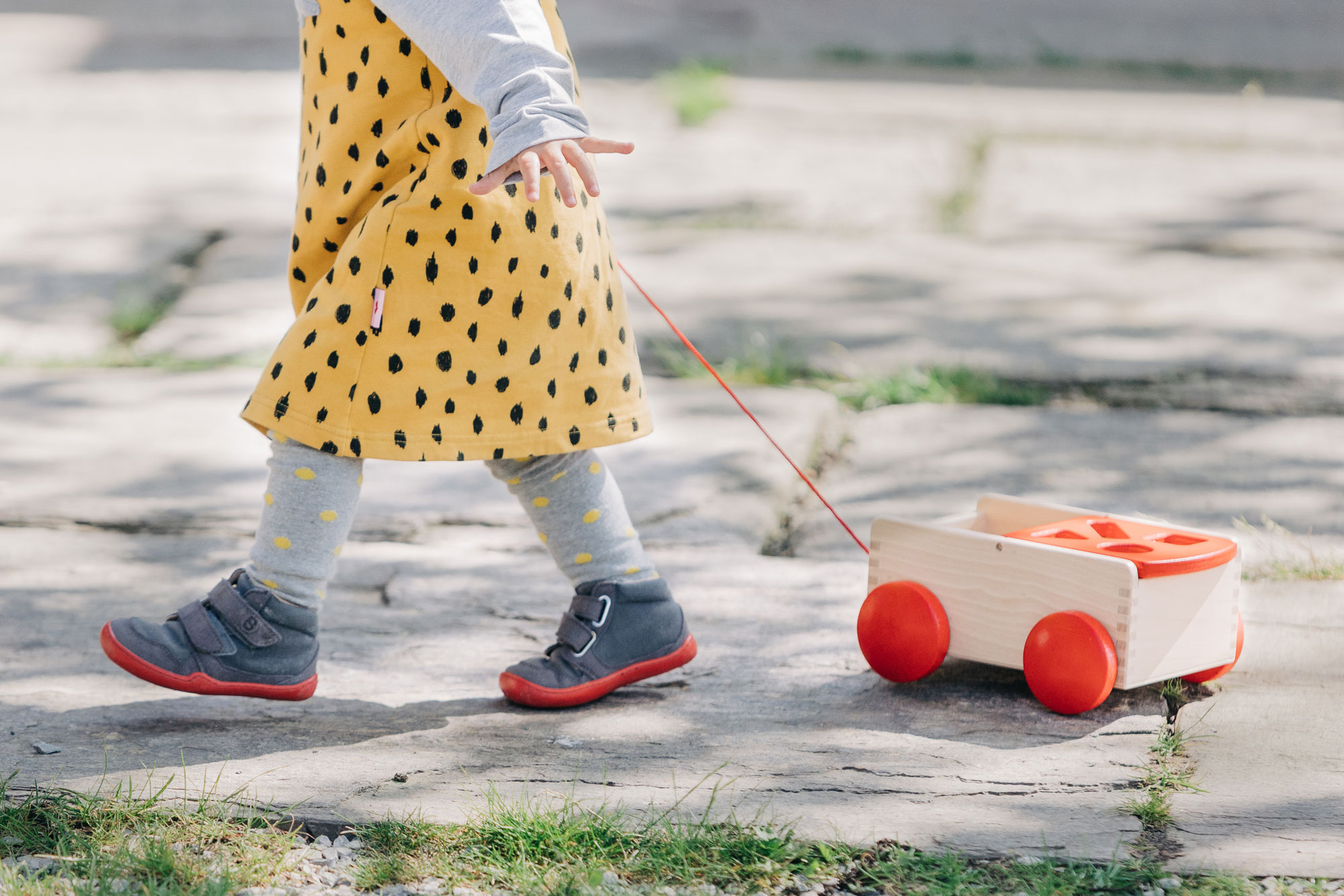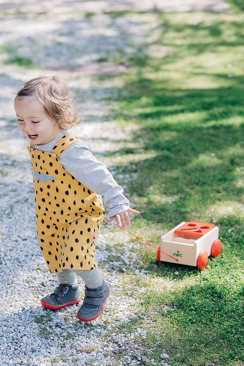 Eine Sortierbox der ganz besonderen Art: verschiedene Formen aus wertigem Buchenholz lassen sich von der einen Wagenseite zur anderen sortieren. In der Regel sind die Formen somit immer spielerisch aufgeräumt und selbst das Kuscheltier kann noch mitfahren. Unser hochwertiger, stabiler Holzspielzeug-Ziehwagen ist mit viel Liebe zum Detail und aus massivem Buchenholz gefertigt. Die Seiten sind fingergezinkt. Acht Formenklötzchen in Grundfarben sind beinhaltet. Holzspielzeug, das sich bewegen kann. Formen und Farben, die entdeckt, erkundet, zugeordnet werden. Alle Sinne des kleinen Kindes werden durch hochwertiges, pädagogisch wertvolles Holzspielzeug angeregt – und gleichzeitig ist es wunderbar, wenn der wertvolle Naturwerkstoff Holz als Erfahrung im Spiel der Kinder mitlebt. Beim Spielen ist der Formenwagen aus massivem Holz sehr vielfältig und kreativ einsetzbar und eignet sich für Babys ab etwa einem Jahr. Durch den zu beiden Seiten klappbaren Aufsatz können die Formenteile aus Holz immer wieder durch die Öffnungen im Deckel auf die andere Seite einsortiert werden. Spielerisch und sanft werden so motorische Fähigkeiten gefördert und die Wahrnehmung für passende Formen geübt. So dürfen die kleinen Kinder selber nach und nach entdecken, welche Formen sich in welche Öffnungen zuordnen und einsortieren lassen. Das Gefühl, es selber ganz alleine und ohne Hilfe geschafft zu haben, ist ein an Glück, Staunen und Freude kaum zu übertreffendes. Außerdem dient der massive Holzwagen mit der kleinen Nachzieh-Schnur auch zuverlässig dem Transport von Bausteinen, kleinen Kuscheltieren oder Püppchen.