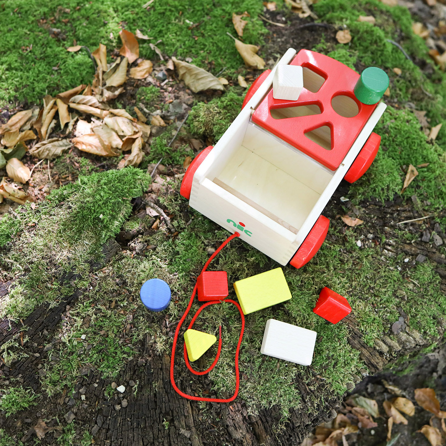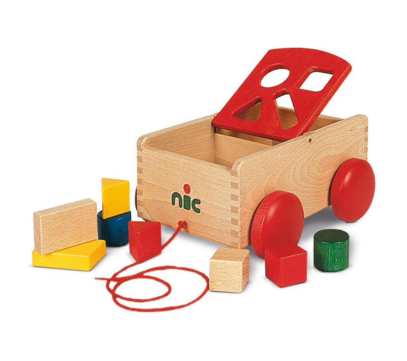 | Inhalt: | 1 Nachziehwagen, (4 Formenklötze je 2 x, mit klappbarem Aufsatz zum Formenstecken) |