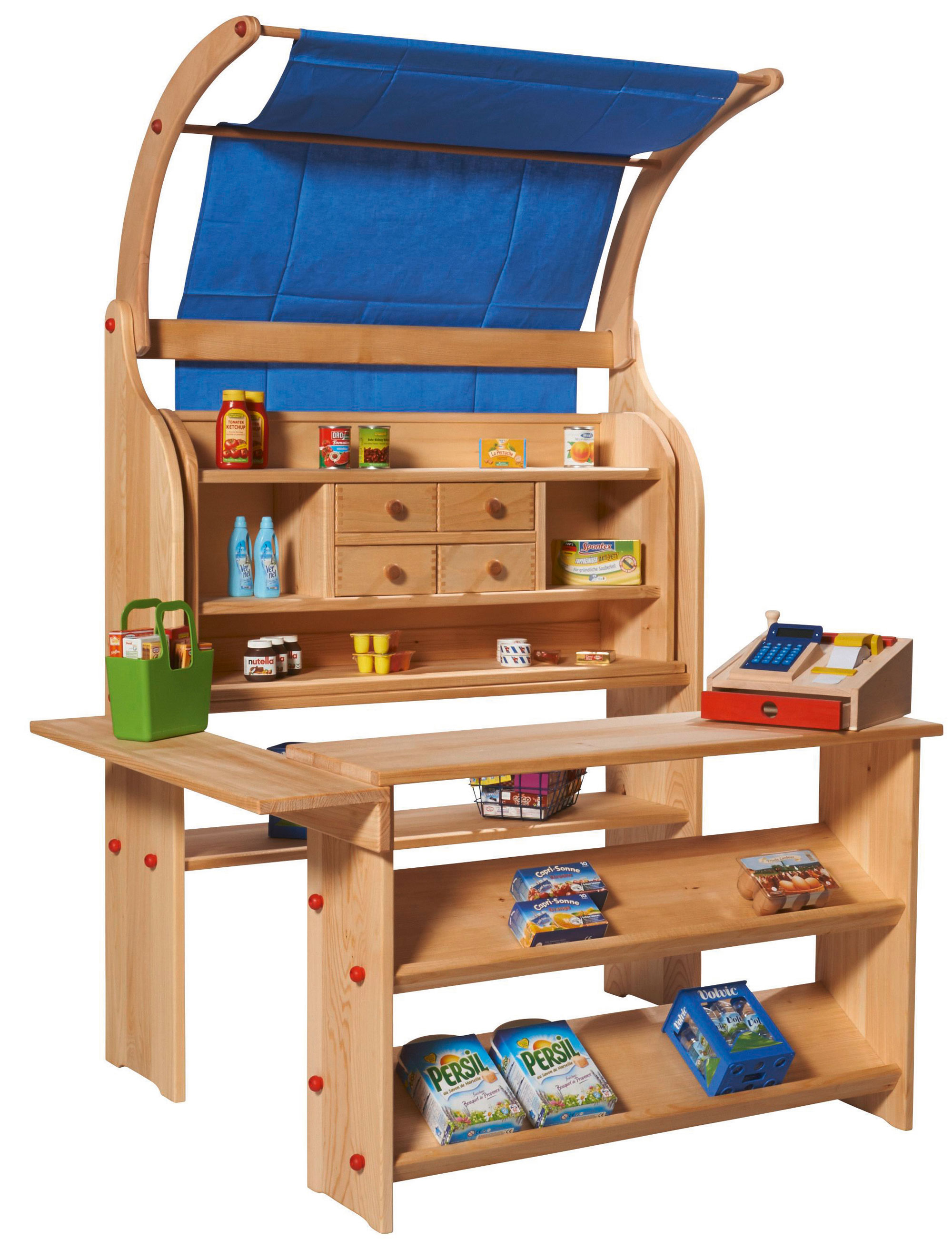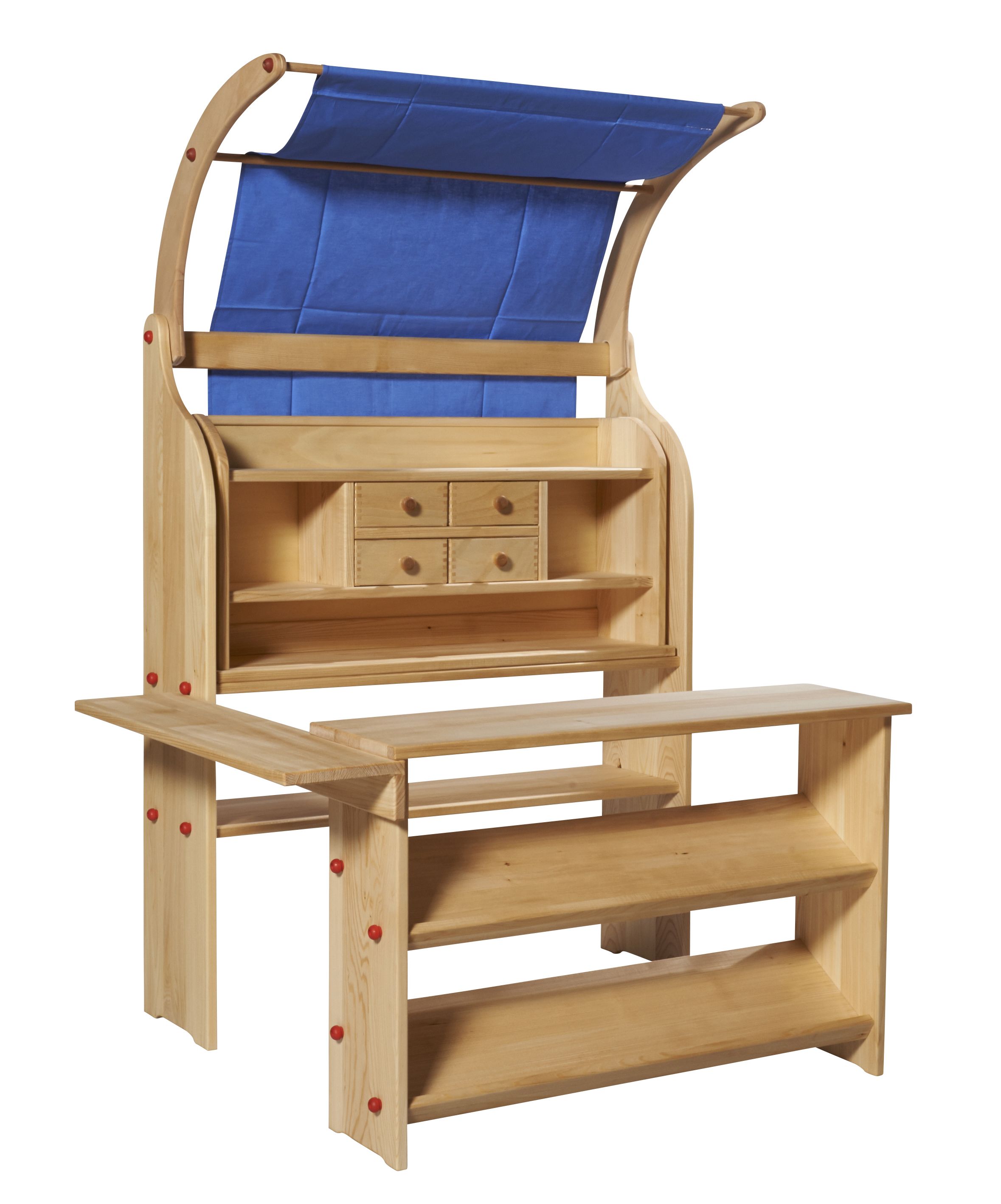 | Inhalt: | 1 Kaufladen mit Dach, (dieTiefe ist zweistufig verstellbar, 4 fingergezinkte Schubladen) |