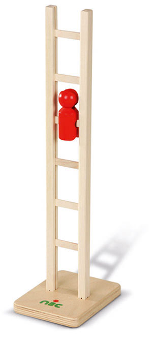 Unermüdlich, verlässlich, Stufe um Stufe und in schlichter Eleganz purzelt er kopfüber-kopfunter die Holzleiter hinunter – der wagemutige Kletter Nic. Das furchtlose, kleine rote Männlein aus Buchenholz hat seinen kunstvollen „Abgang“ so verinnerlicht, dass es niemals an einer Stufe hängenbleibt. Mit begeistertem „Noch mal“ können sich seine kleinen Zuschauer stets darauf verlassen, dass der Kletter Nic sein Leiter-Kunststück so lange ausdauernd zum Besten gibt, wie ihn eine geduldige Hand nach der Ankunft am Fuße der Leiter wieder in die luftige Höhe befördert. Ein wunderbares Schauspiel! Klettermännchen sind ein zeitloser Holzspielzeug-Klassiker. Dieses besondere Klettermännlein legt ein sehr gemütliches, harmonisches Tempo vor, während es lustig klackernd Stufe um Stufe nimmt. Dabei können die älteren Kinder mit ihren Augen wahrnehmen, wie das feine Kunststück funktioniert, was ihnen innere Sicherheit und die Freude schenkt, etwas „entdeckt“ zu haben. Die Sprossen der Leiter aus Buchenholz sind wunderschön in Regenbogenfarben gestaltet, während unser kleiner, wackerer Akrobat wunderschön signalrot ist. Obendrein kann selbst ohne Leiter mit dem Klettermännchen gespielt werden, da es nicht verschluckbar ist und so ziemlich alles mitmacht, was Kindern so einfällt.