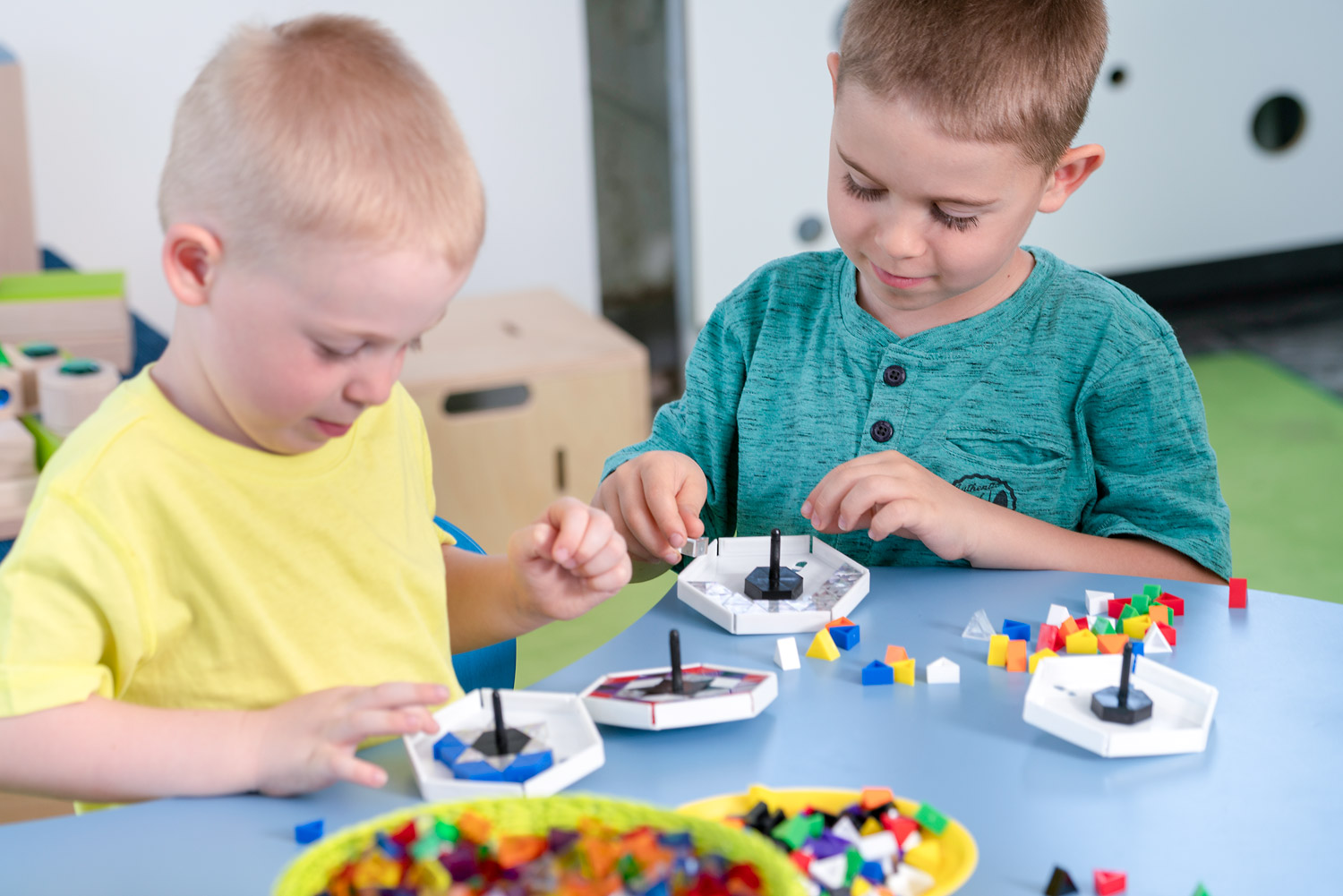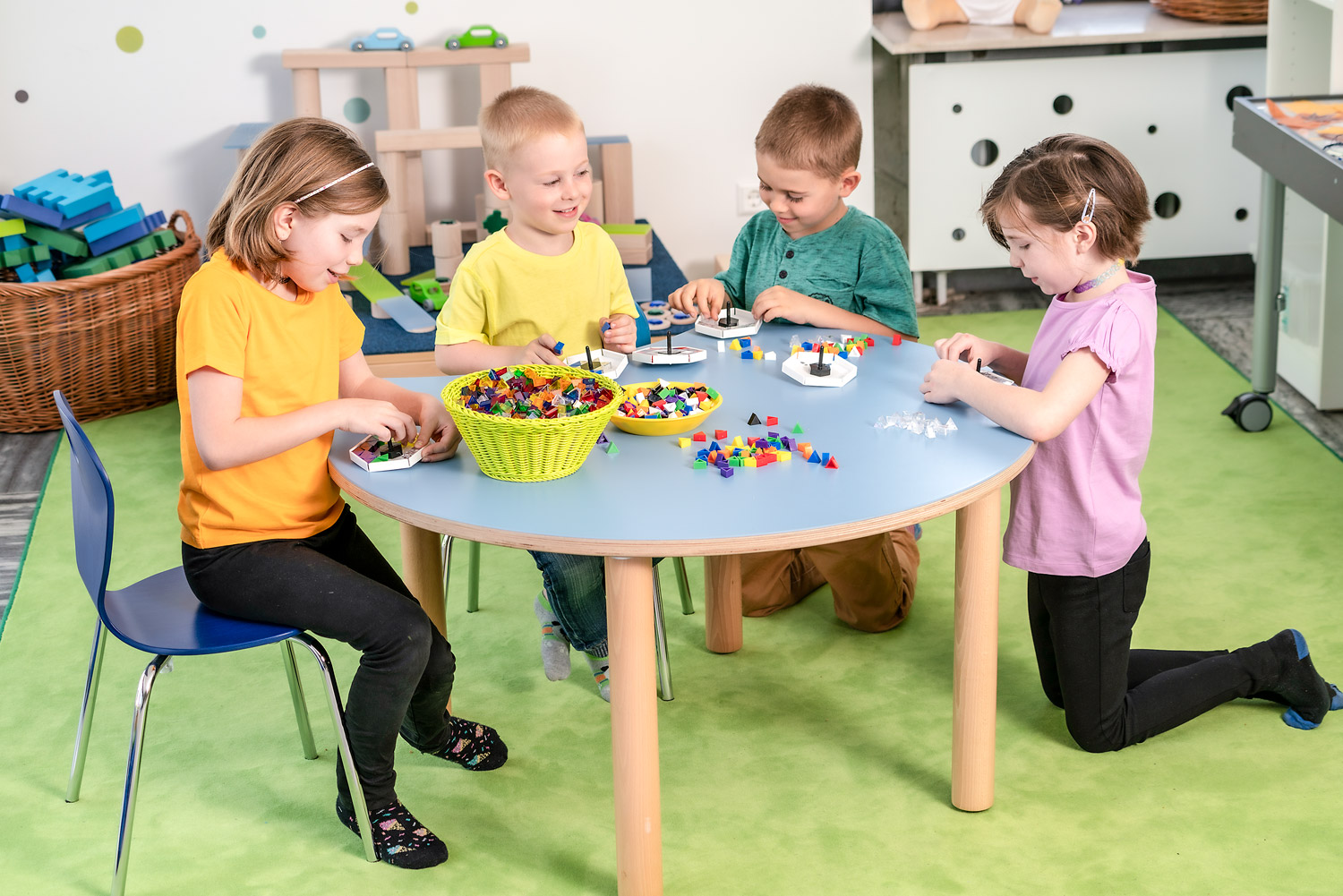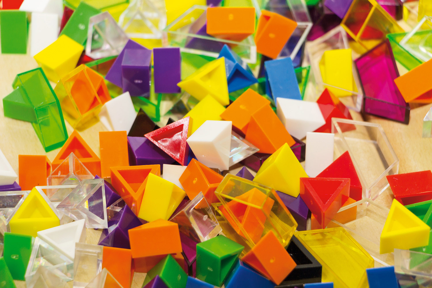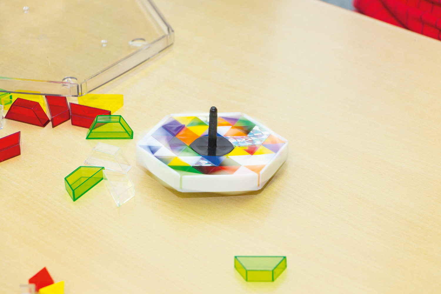 ca. 450 Prismos opak (Seitenlänge 1,7 cm, 1 cm dick), ca. 100 Glitzer Prismos (Seitenlänge 1,7 cm, 1 cm dick), 5 Legerahmen opak (Ø 11 cm), 5 Kreiseleinsätze (Ø 3,5 cm, 5 cm hoch), inklusive Anleitung