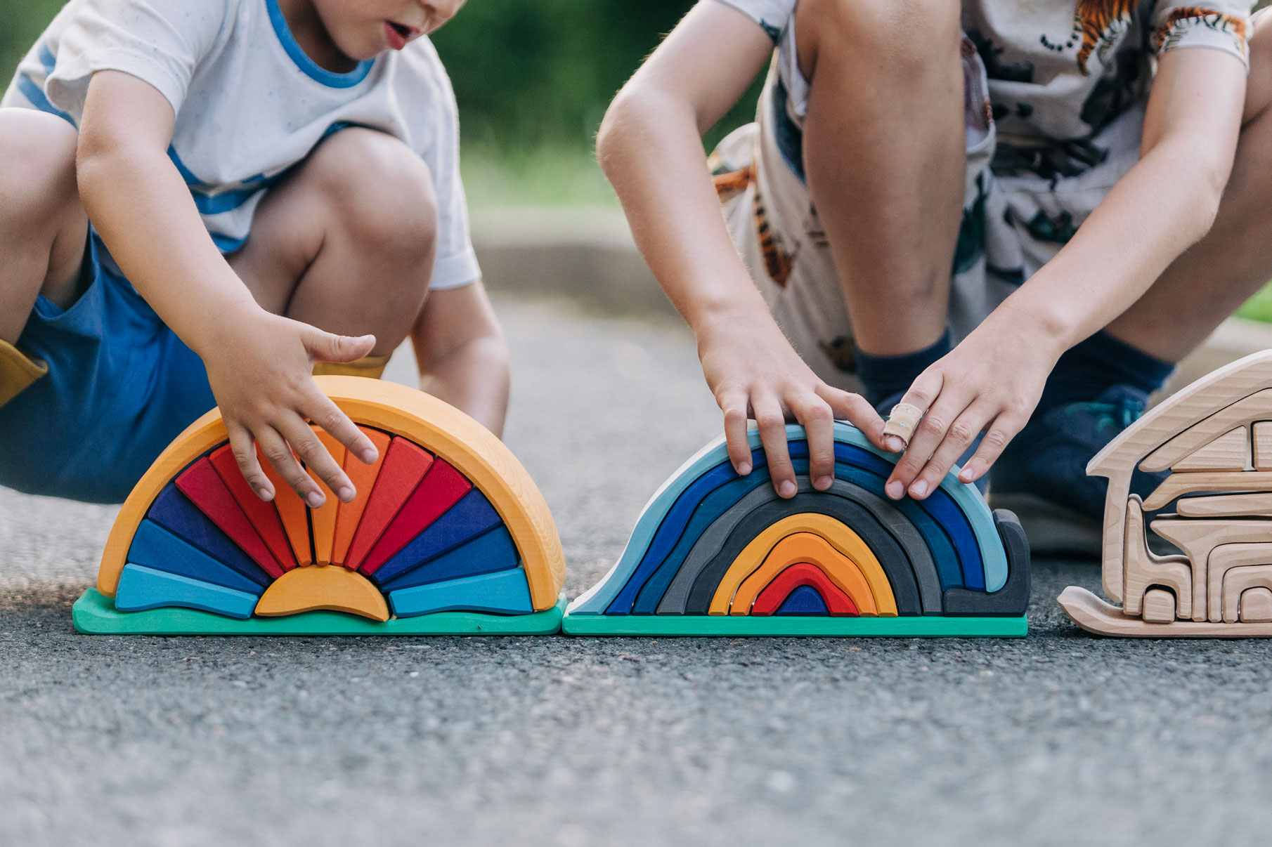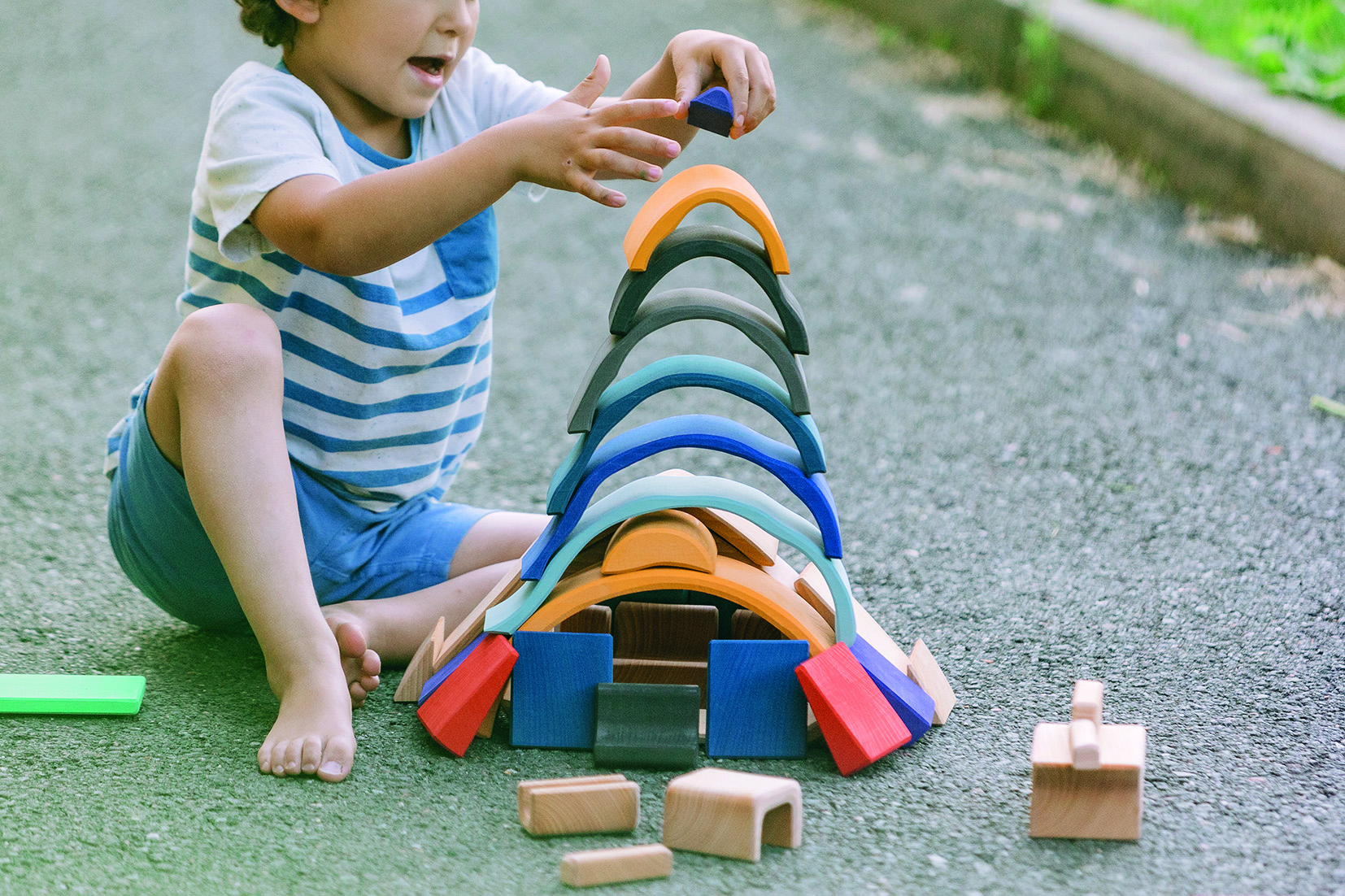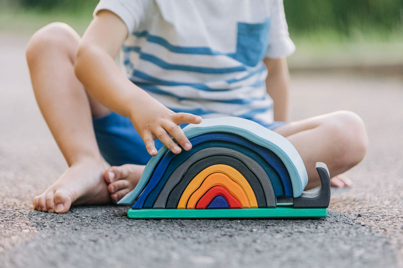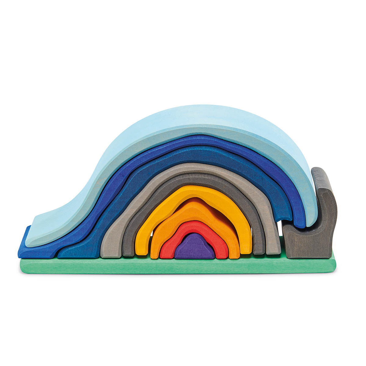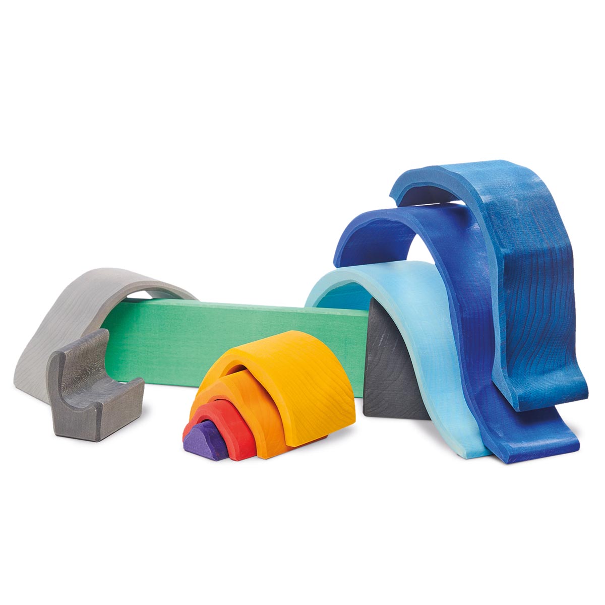 Wenn an lauen Sommerabenden der funkelnde Sternenhimmel sein weites Zelt über die Erde breitet, ist das Lagerfeuer ein zauberhafter Ort der Zusammenkunft. Behaglichkeit, Gemeinschaft und Ruhe strahlt das knisternd leuchtende Feuer aus. Der verträumte Duft von Stockbrot und der zarte Klang der Gitarre verleihen dem Lagerfeuer ein hüllendes Gefühl menschlicher Nähe und Geborgenheit. Und so versammeln sich die Menschen gerne dort, um gemeinsam zu singen, einander zu lauschen und die nächtliche Natur zu genießen.Das wunderschön gestaltete Holzspielzeug trägt die leuchtend-warmen Farben des glühenden Lagerfeuers und der sommerlich-blauen Nachthülle in sich. Die einzelnen Holzbögen des Formenspiels dürfen ganz freilassend und kreativ ins Spiel der Kinder hineinfinden - ob als Lagerfeuer oder in einem ganz anderen Kontext.Hochwertige, sorgfältig hergestellte Holzbausteine und Formenspiele aus guten Naturmaterialien sind ein pädagogisch sehr wertvolles und zeitloses Holzspielzeug für Kinder. Im fantasievollen, ruhigen Spiel der Kinder kann so aus den freien Formen immer Neues entstehen. Ganze Spielewelten, die zusammen mit Holztieren, Figuren und Püppchen, Dekorationstüchern und Naturmaterialien ausgebaut und kreativ erschaffen werden. Entgegen den Spielzeugen, denen ein fester Spielsinn bereits eingeschrieben ist, wird hier das Freie im Spiel der Kinder pädagogisch sanft gefördert und so dem kraftvollen Impuls des Erschaffens aus der eigenen Fantasie Raum gegeben.In diesem Rahmen ist es auch so wichtig, dem Spiel der Kinder den notwendigen Raum und die Ruhe zu gewähren. Nur wo Kinder ganz eintauchen können in ihr Schaffen, kann sich die große Kraft des kindlichen Spiels ganz entfalten. Und unsere Kinder in ihrer Entwicklung stärken und festigen.