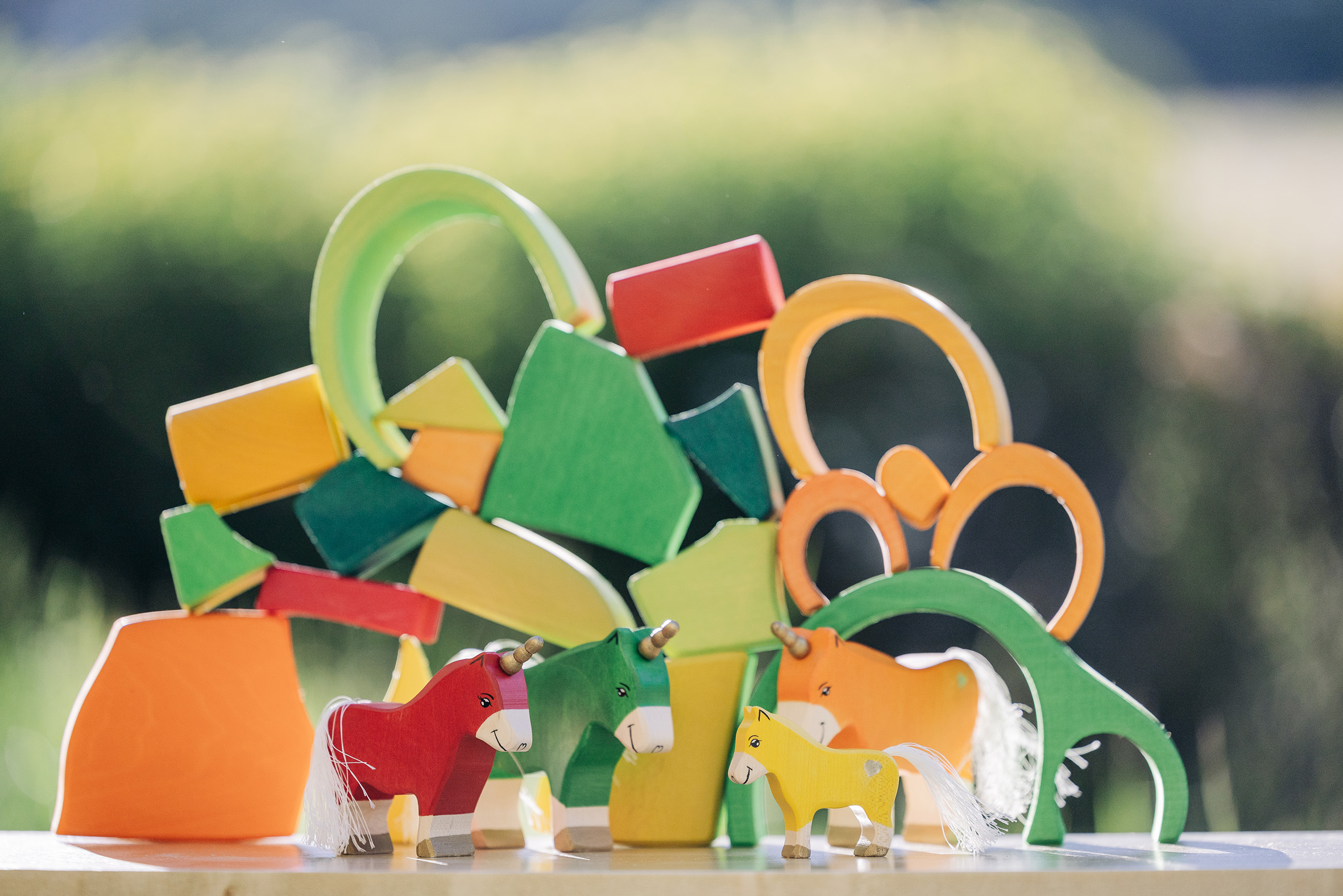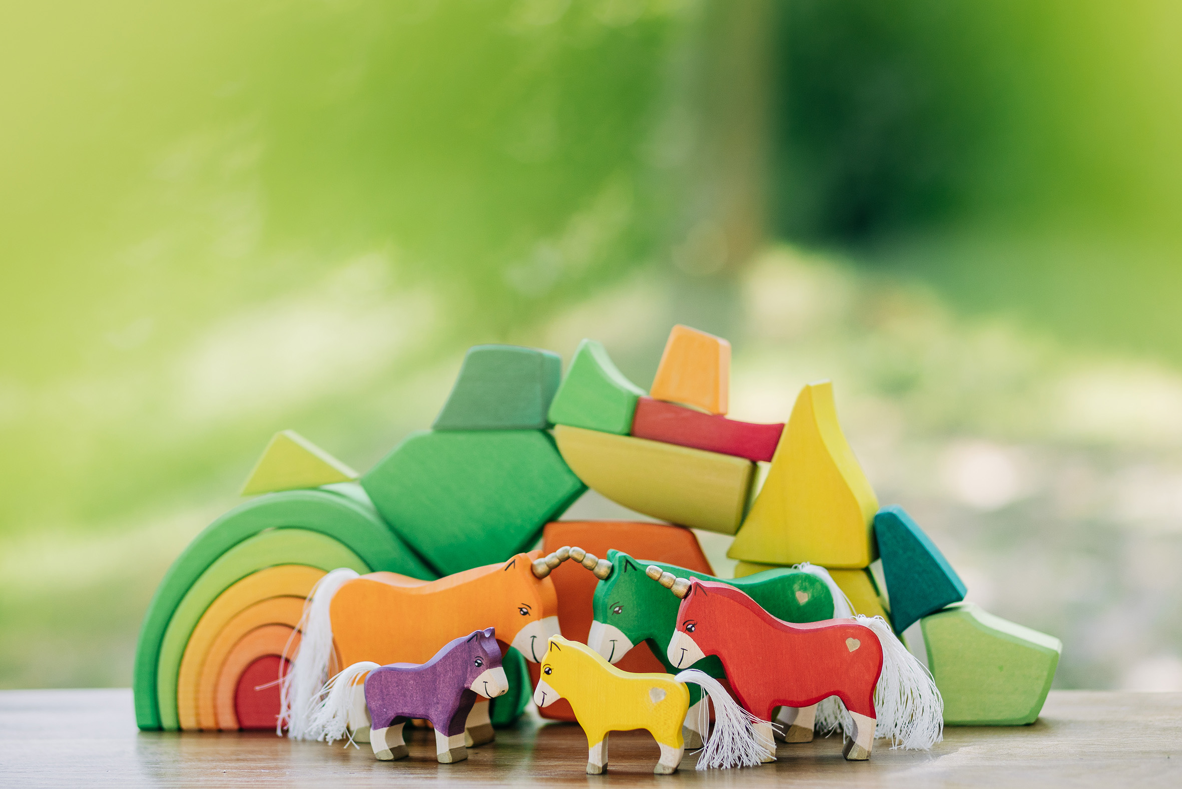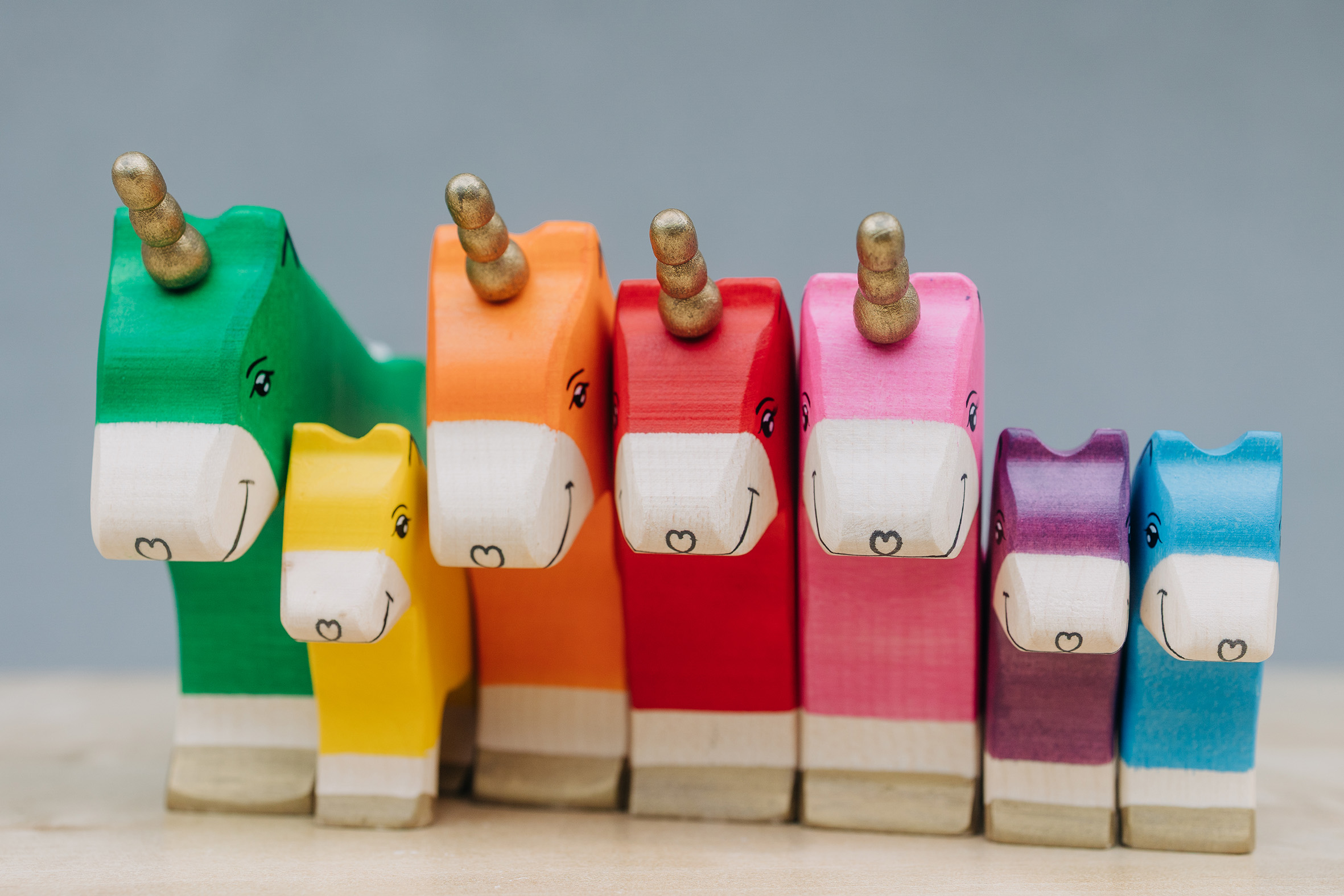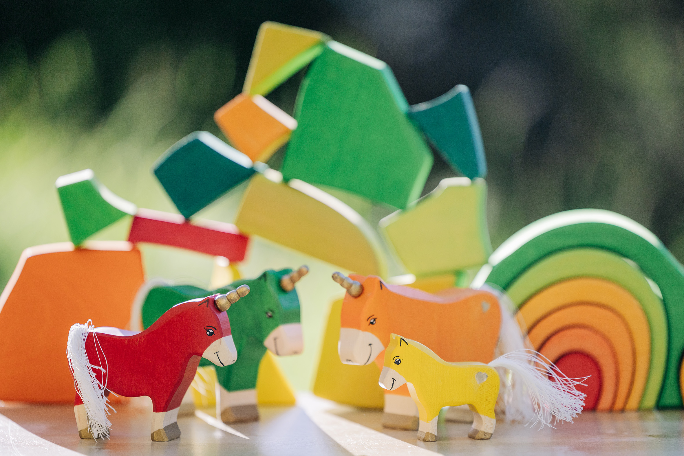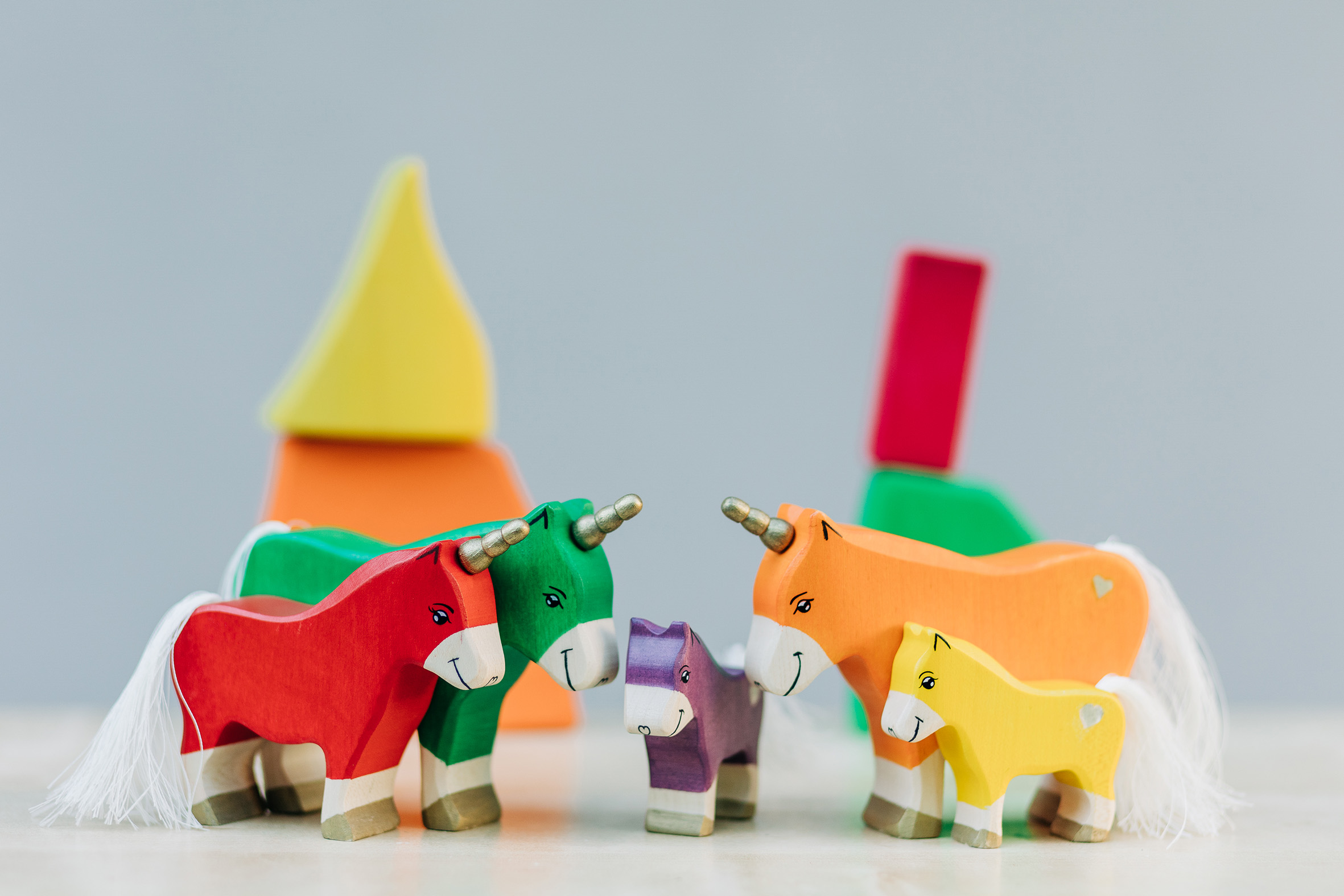 Willkommen in einer Welt voller Farben, Magie und unendlicher Fantasie! Unsere liebevoll handgefertigten Einhörner aus Holz laden Kinder dazu ein, in eine bunte Traumwelt einzutauchen, funkelnde Edelsteine und geheimnisvolle Abenteuer auf sie warten. Das stolze blaue Einhorn bewacht den Regenbogenpalast, während das goldene Einhorn neugierig durch die farbenfrohe Landschaft galoppiert. Und das zarte rosafarbene Einhorn bringt mit seiner Sanftheit eine Prise Zauber und Freundlichkeit in jede Geschichte. Begleitet werden die Fabelwesen von leuchtenden Holzbausteinen, die wie funkelnde Regenbogenkristalle wirken. Ob Türme, Regenbogenbrücken oder magische Höhlen – die bunten Elemente lassen sich immer wieder neu kombinieren und eröffnen unendliche Spielmöglichkeiten. Lass die Magie einziehen – entdecke jetzt unsere zauberhafte Einhorn-Welt!