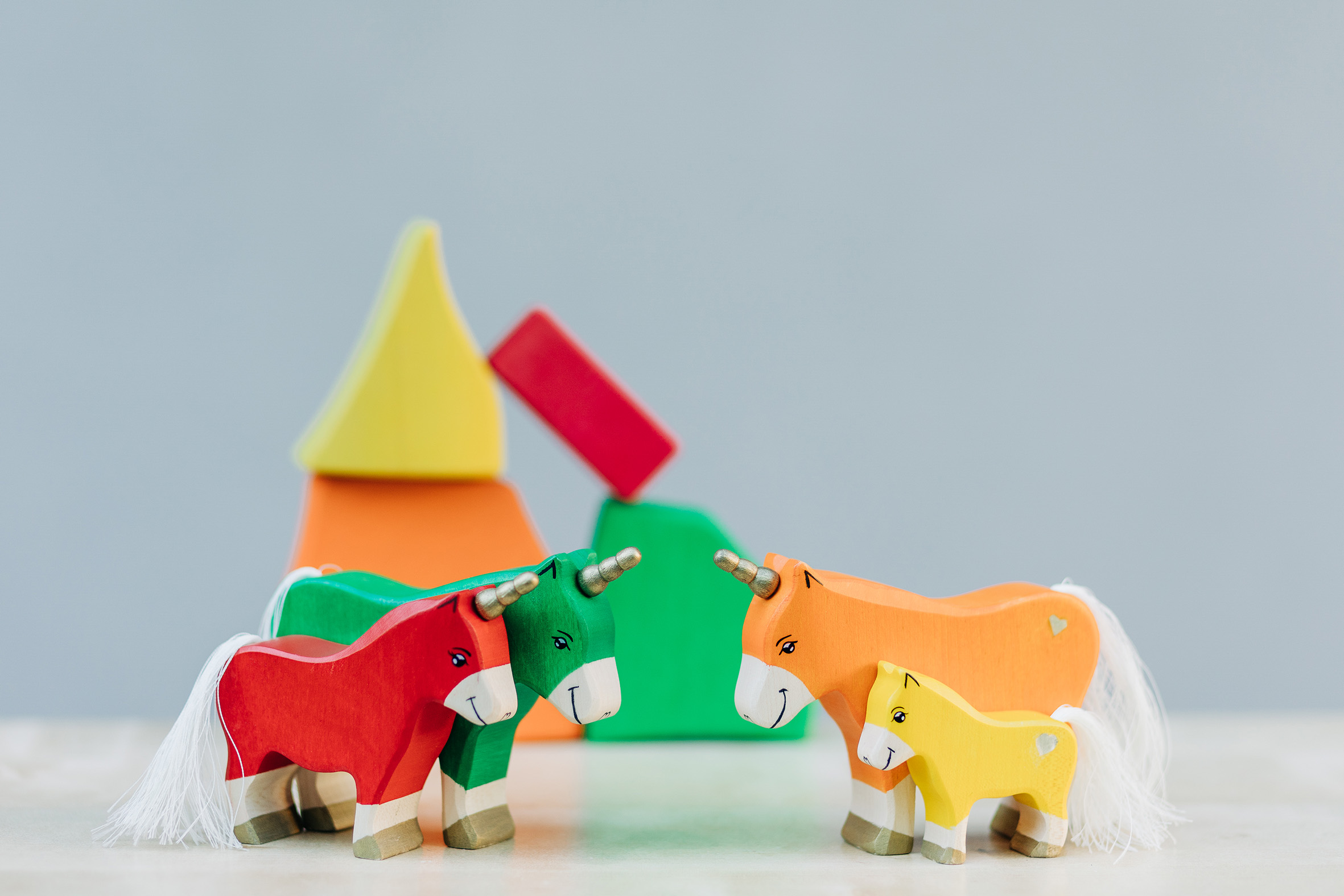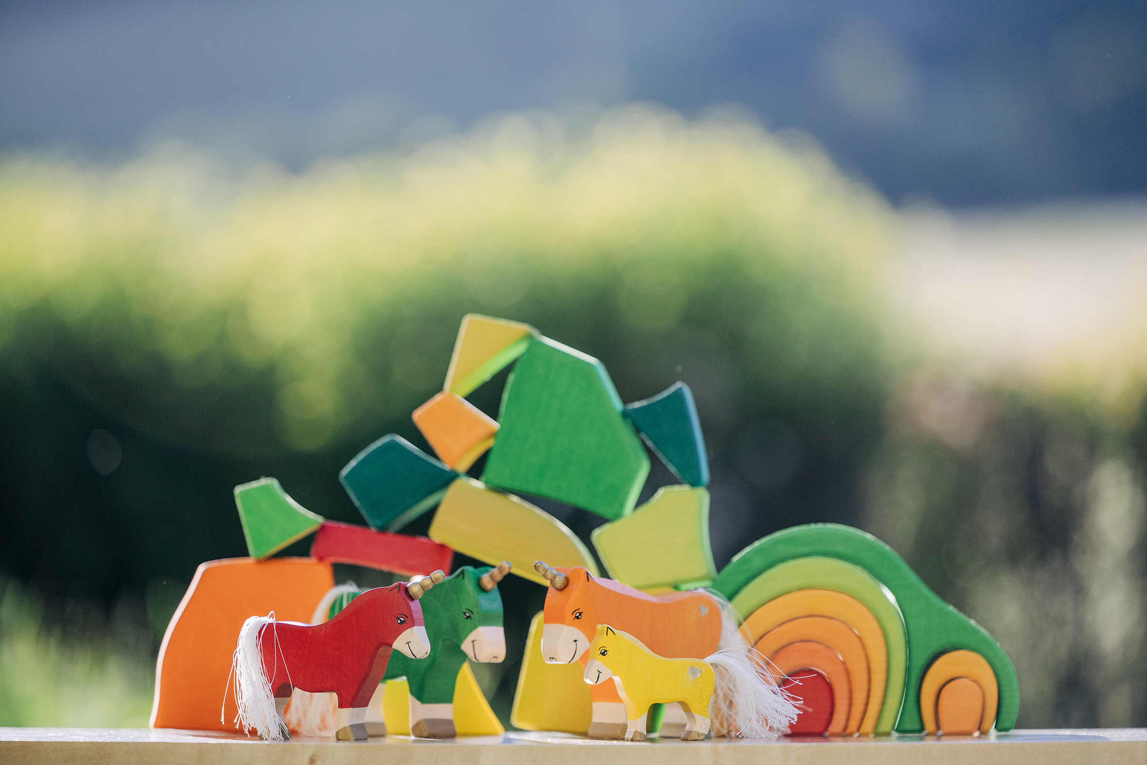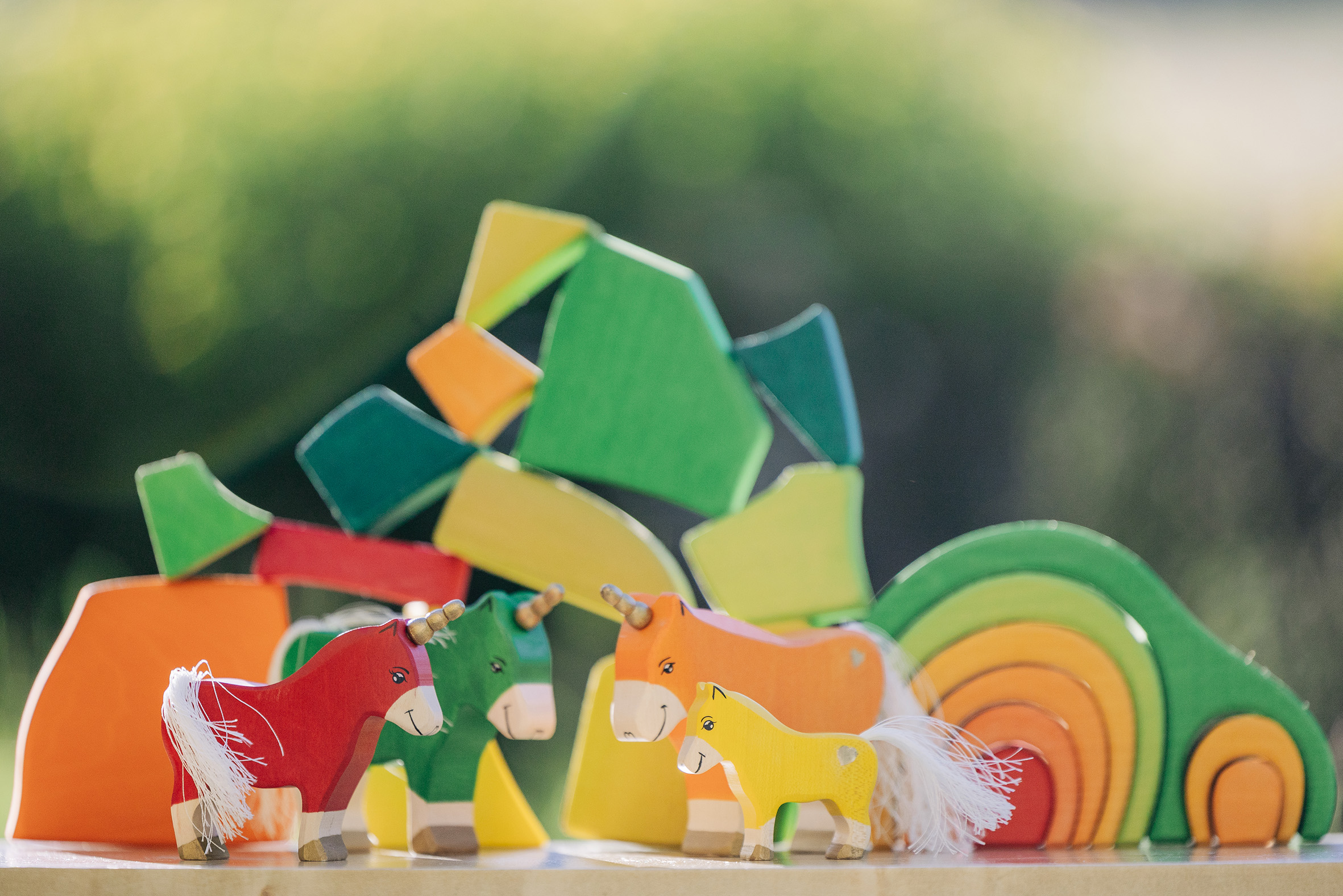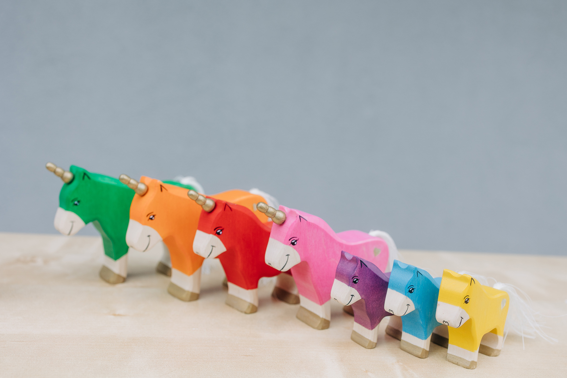 Willkommen in einer Welt voller Farben, Magie und unendlicher Fantasie! Unsere liebevoll handgefertigten Einhörner aus Holz laden Kinder dazu ein, in eine bunte Traumwelt einzutauchen, funkelnde Edelsteine und geheimnisvolle Abenteuer auf sie warten. Das stolze blaue Einhorn bewacht den Regenbogenpalast, während das goldene Einhorn neugierig durch die farbenfrohe Landschaft galoppiert. Und das zarte rosafarbene Einhorn bringt mit seiner Sanftheit eine Prise Zauber und Freundlichkeit in jede Geschichte. Begleitet werden die Fabelwesen von leuchtenden Holzbausteinen, die wie funkelnde Regenbogenkristalle wirken. Ob Türme, Regenbogenbrücken oder magische Höhlen – die bunten Elemente lassen sich immer wieder neu kombinieren und eröffnen unendliche Spielmöglichkeiten. Lass die Magie einziehen – entdecke jetzt unsere zauberhafte Einhorn-Welt!