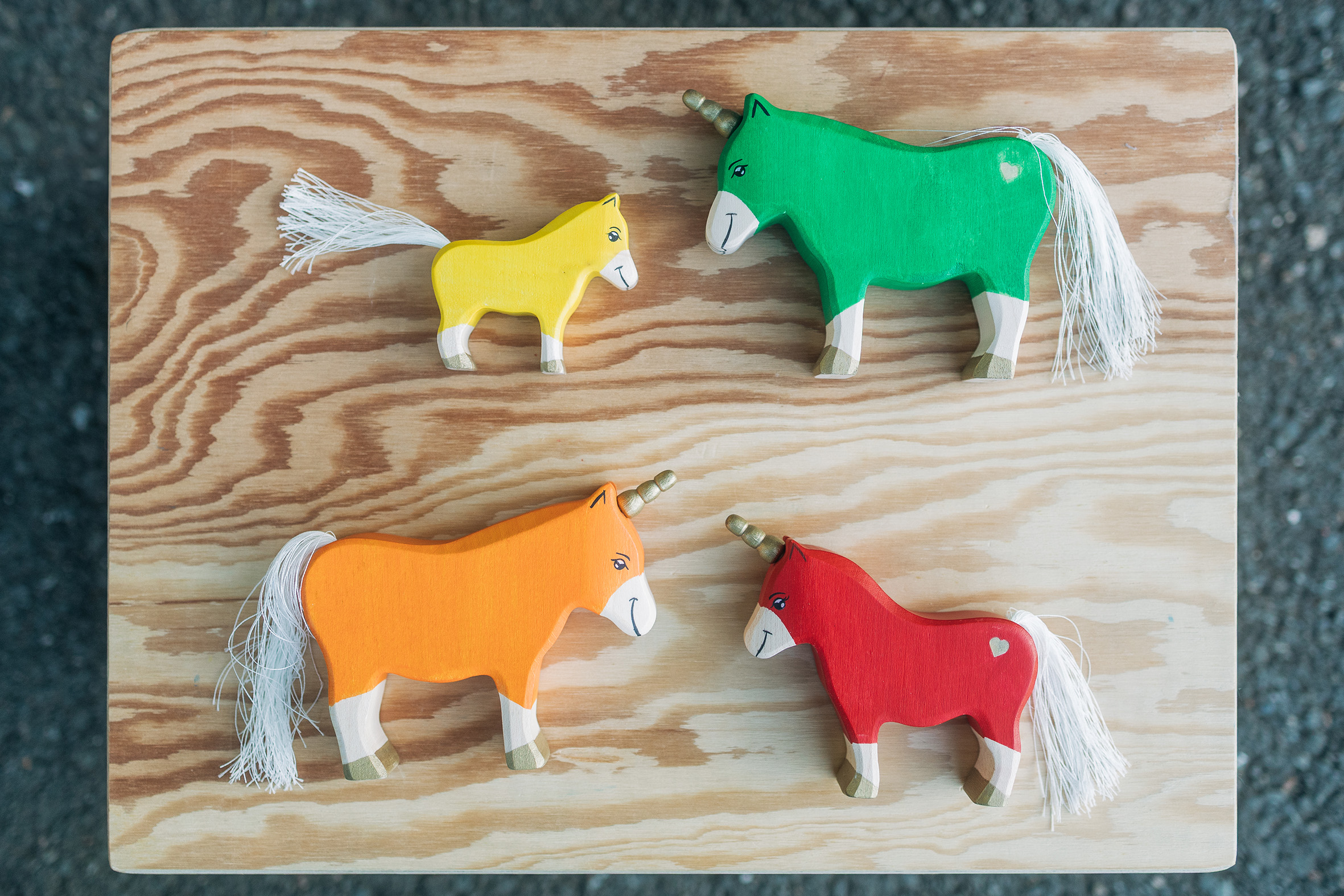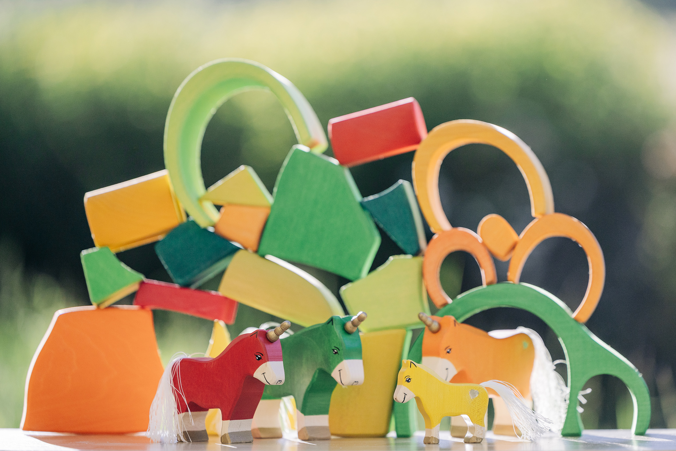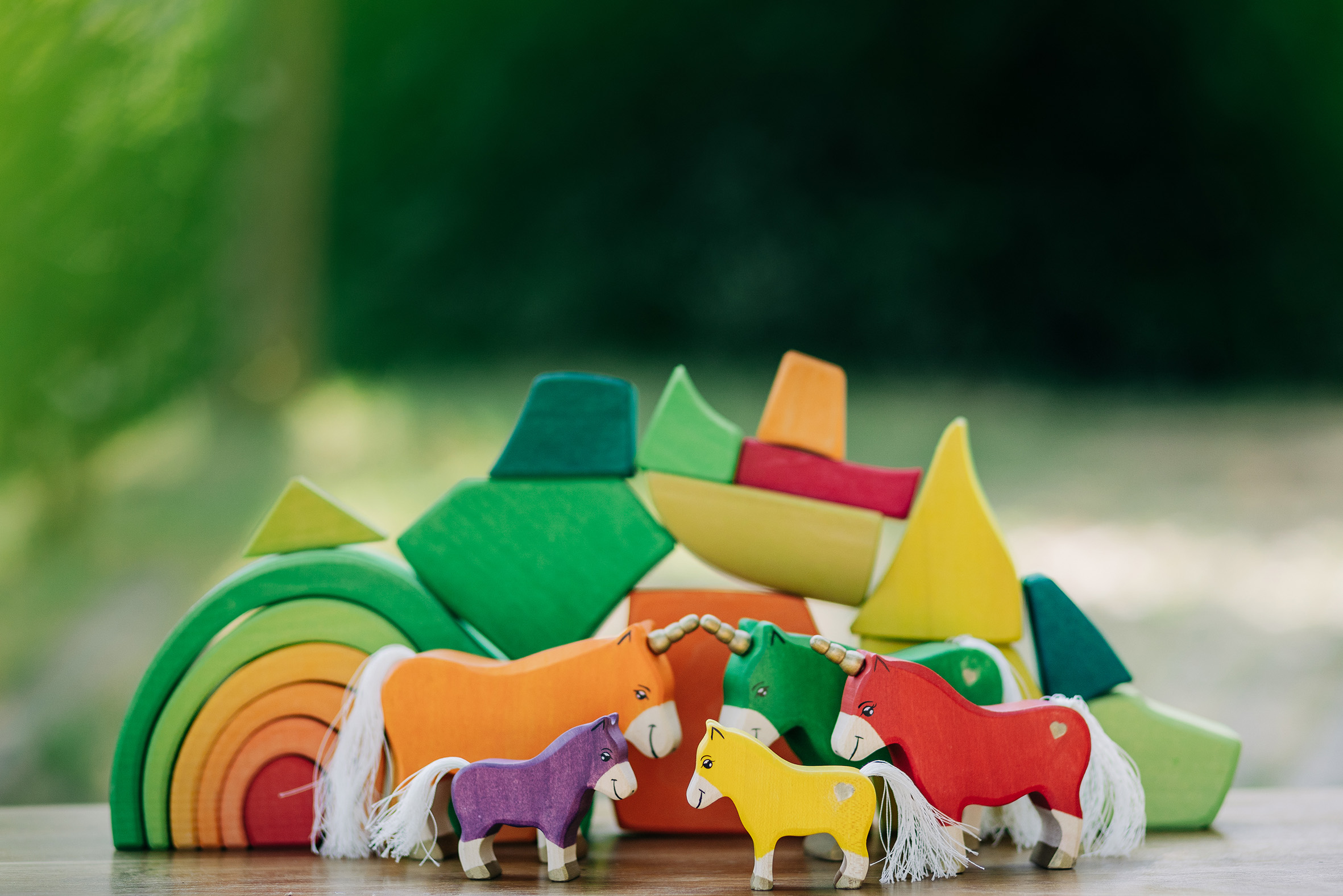 Willkommen in einer Welt voller Farben, Magie und unendlicher Fantasie! Unsere liebevoll handgefertigten Einhörner aus Holz laden Kinder dazu ein, in eine bunte Traumwelt einzutauchen, funkelnde Edelsteine und geheimnisvolle Abenteuer auf sie warten. Das stolze blaue Einhorn bewacht den Regenbogenpalast, während das goldene Einhorn neugierig durch die farbenfrohe Landschaft galoppiert. Und das zarte rosafarbene Einhorn bringt mit seiner Sanftheit eine Prise Zauber und Freundlichkeit in jede Geschichte. Begleitet werden die Fabelwesen von leuchtenden Holzbausteinen, die wie funkelnde Regenbogenkristalle wirken. Ob Türme, Regenbogenbrücken oder magische Höhlen – die bunten Elemente lassen sich immer wieder neu kombinieren und eröffnen unendliche Spielmöglichkeiten. Lass die Magie einziehen – entdecke jetzt unsere zauberhafte Einhorn-Welt!