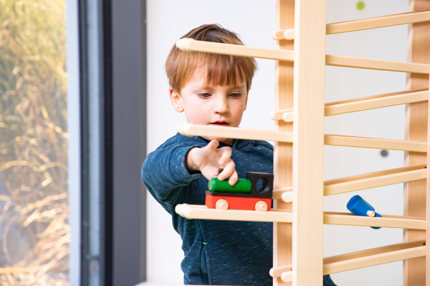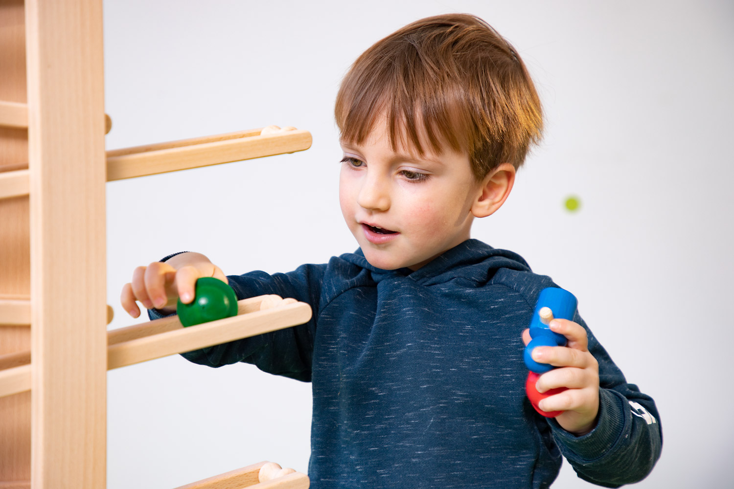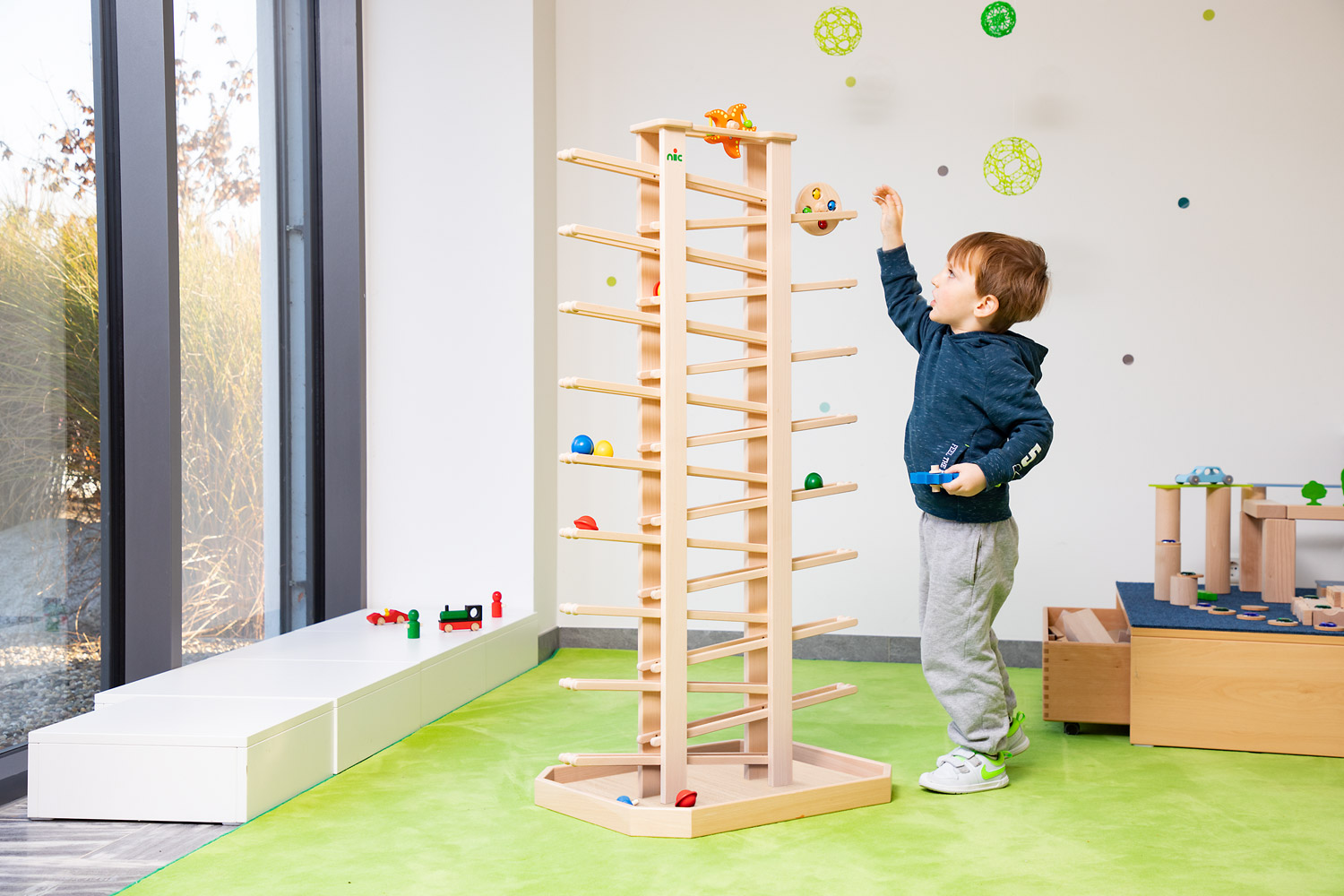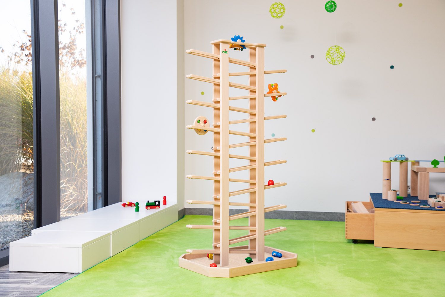 Diese extragroße Kugelbahn ermöglicht das Spielen im Stehen. Durch die unterschiedliche Haptik des Materials bietet die Multibahn eine mehrheitliche Sinnes- und Wahrnehmungsförderung. Die Auffangschale dient der Aufbewahrung der Laufteile und bietet eine optimale Standfestigkeit.