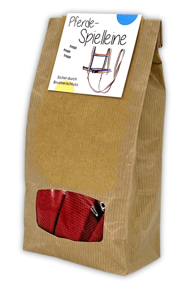 Lasst die Pferdlein fröhlich springen! Die Pferdespielleine lässt sich kinderleicht wie eine Jacke anziehen und vorne mittels eines Steckverschlusses schließen. So können die Kinder das Pferdegeschirr selbst an- und ausziehen. Die Größe lässt sich am Bauch leicht einstellen und verändern, sodass nichts drückt. Insgesamt sind vier Metallringe angebracht, an denen die Leine befestigt werden kann. Je nachdem, ob das Pferdlein mit den Zügeln gelenkt werden soll oder ob es an der Longe geführt wird. TÜV-geprüfte und in Deutschland hergestellte Pferdespielleine. So lassen sich die munteren Rösslein wunderbar führen und longieren. Ein herrlicher Spiele-Klassiker für Kinder im Kindergarten- und Grundschulalter! Im Beutel waschbar. Pferdespielleinen von JAMSO DESiGN by nic: Nachhaltigkeit, Qualitätsbewusstsein und die Freude an pädagogisch sinnvollem, das freie Spielen förderndem Kinderspielzeug verbinden nic und JAMSO DESiGN.