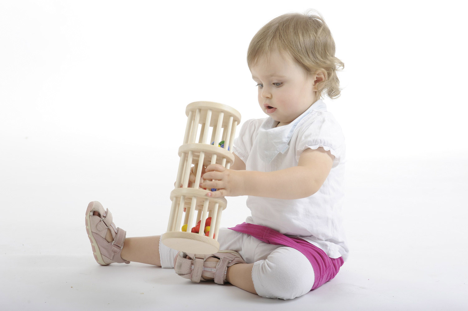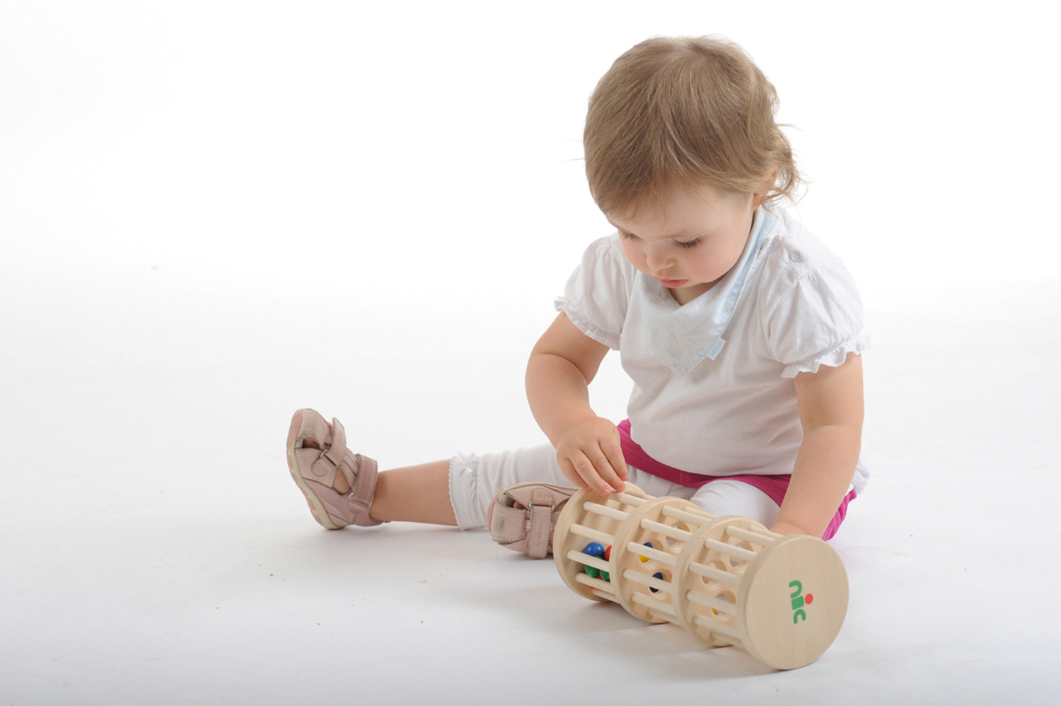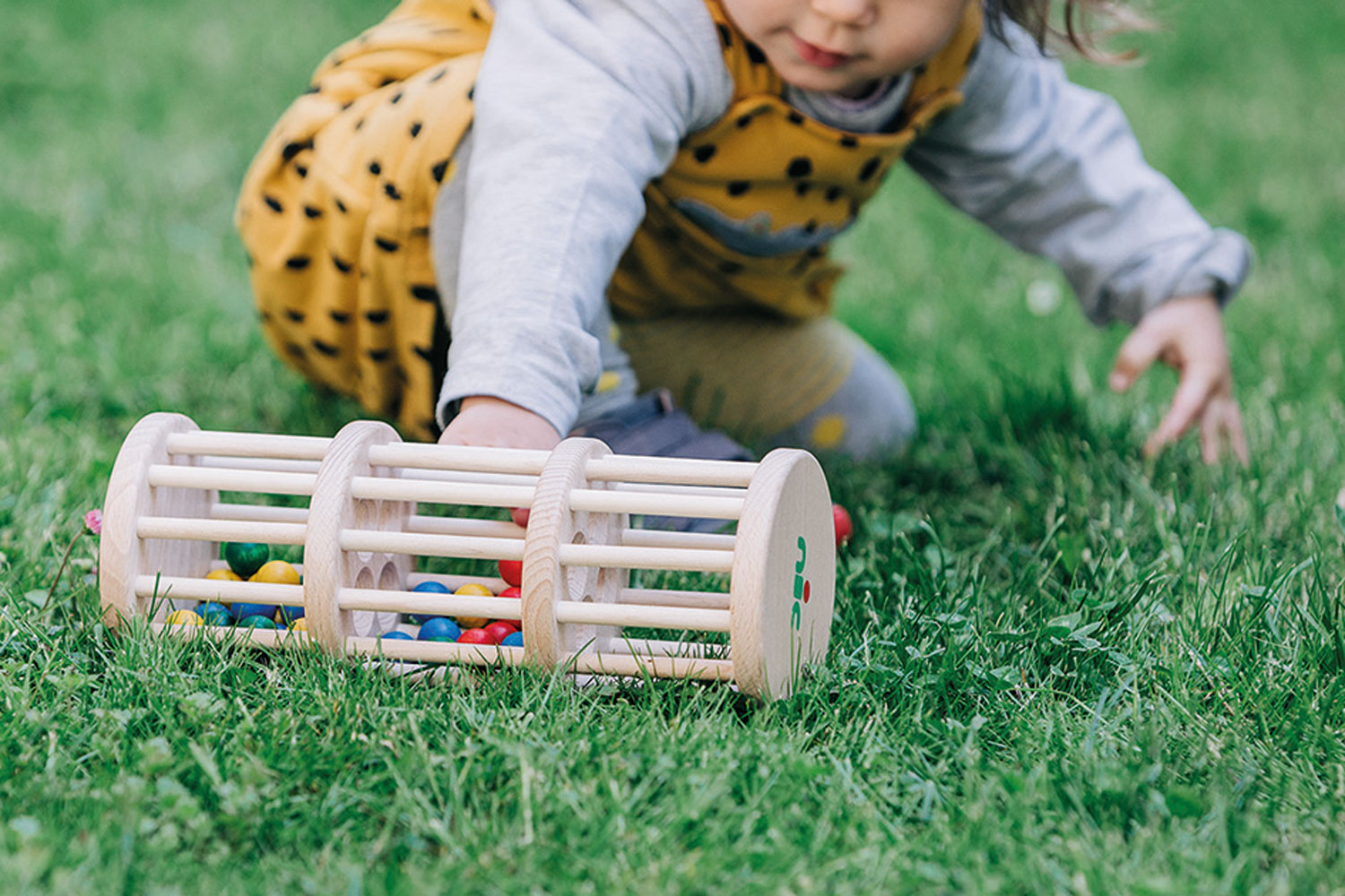 Der große Rasselturm mit drei Ebenen aus wunderschönem, massivem Buchenholz ist ein ganz besonderes Holzspielzeug für Babys bzw. Kleinkinder zwischen ca. 10 Monaten und zwei Jahren. Das tolle Babyspielzeug spricht alle Sinne des kleinen Kindes an. Haptisch wird der wunderbare Werkstoff Holz gut erfühlt. Seine Wärme und Natürlichkeit kann ertastet und gegriffen werden. Optisch erfreuen die bunten Farben und das fein gemaserte Buchenholz sowie die lustig und unermüdlich durch die Löcher plumpsenden Holzkugeln die Augen der Allerkleinsten. Und die Ohren werden aufmerksam, wenn die vielen Holzkugeln beim Umdrehen oder Rollen des Holzspielzeugs lustig klackern, rasseln und kullern. Das ganz besondere Rasselgeräusch entsteht dadurch, dass die Kugeln durch die Konstruktion des Rasselturms über die Etagen langsam nach unten kullern. Das Geräusch hat gleichzeitig etwas Interessantes, das die Aufmerksamkeit der Kleinkinder fesselt, und etwas Beruhigendes wie ein Regenmacher. Da der große nic Rasselturm zudem wunderbar auf dem Fußboden mitgerollt werden kann, ist er auch in der Zeit, in der Babys damit beginnen mobil zu werden, ein fröhlicher Begleiter. Stabil, sicher und in gewohnt hochwertiger Qualität wurde das Baby- und Kleinkindspielzeug mit viel Liebe zum Detail aufwendig von Hand gefertigt.