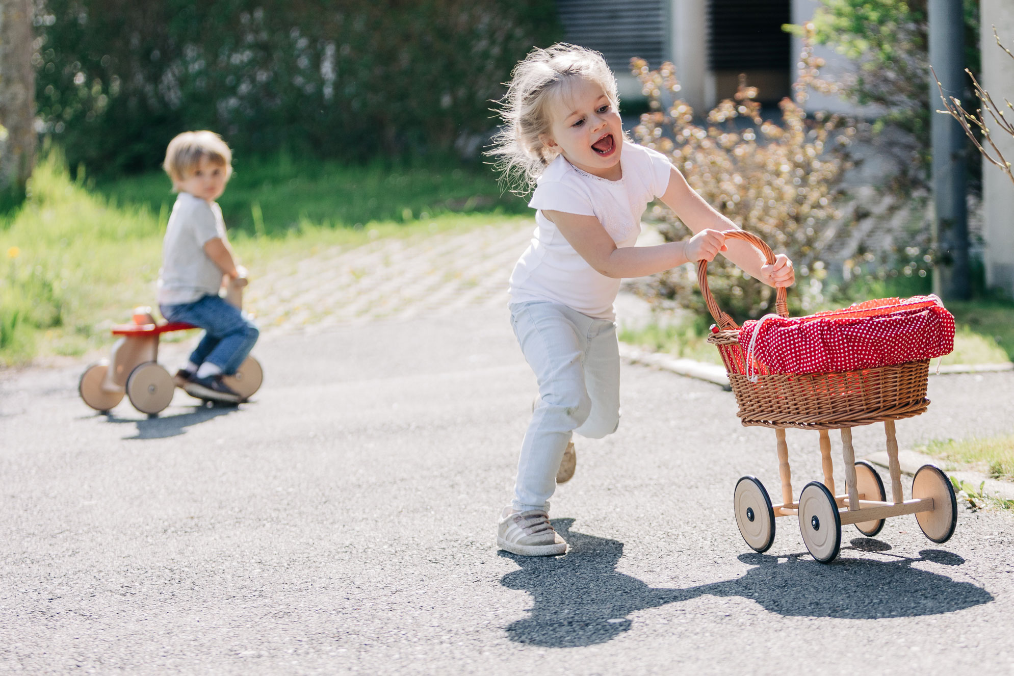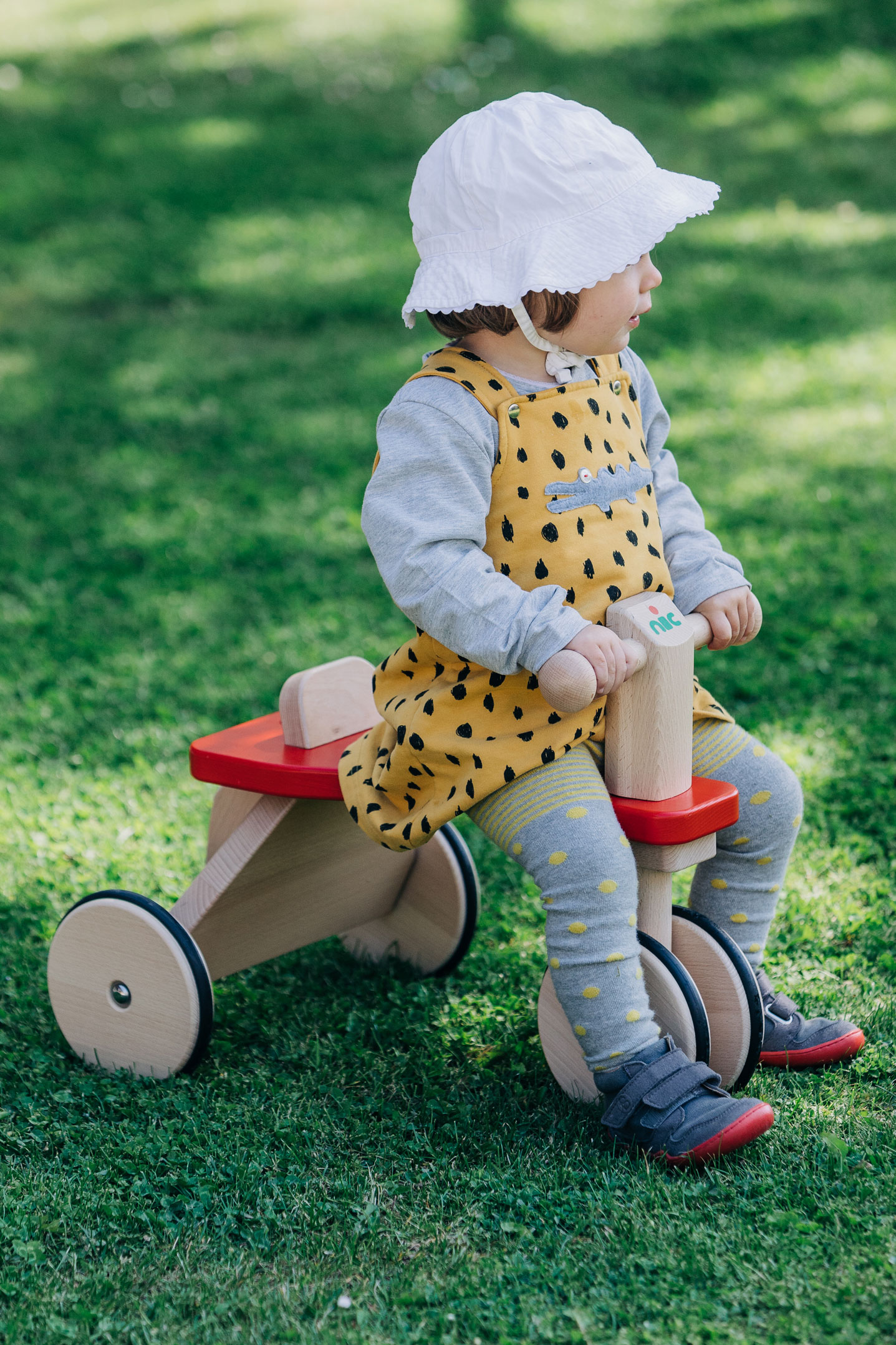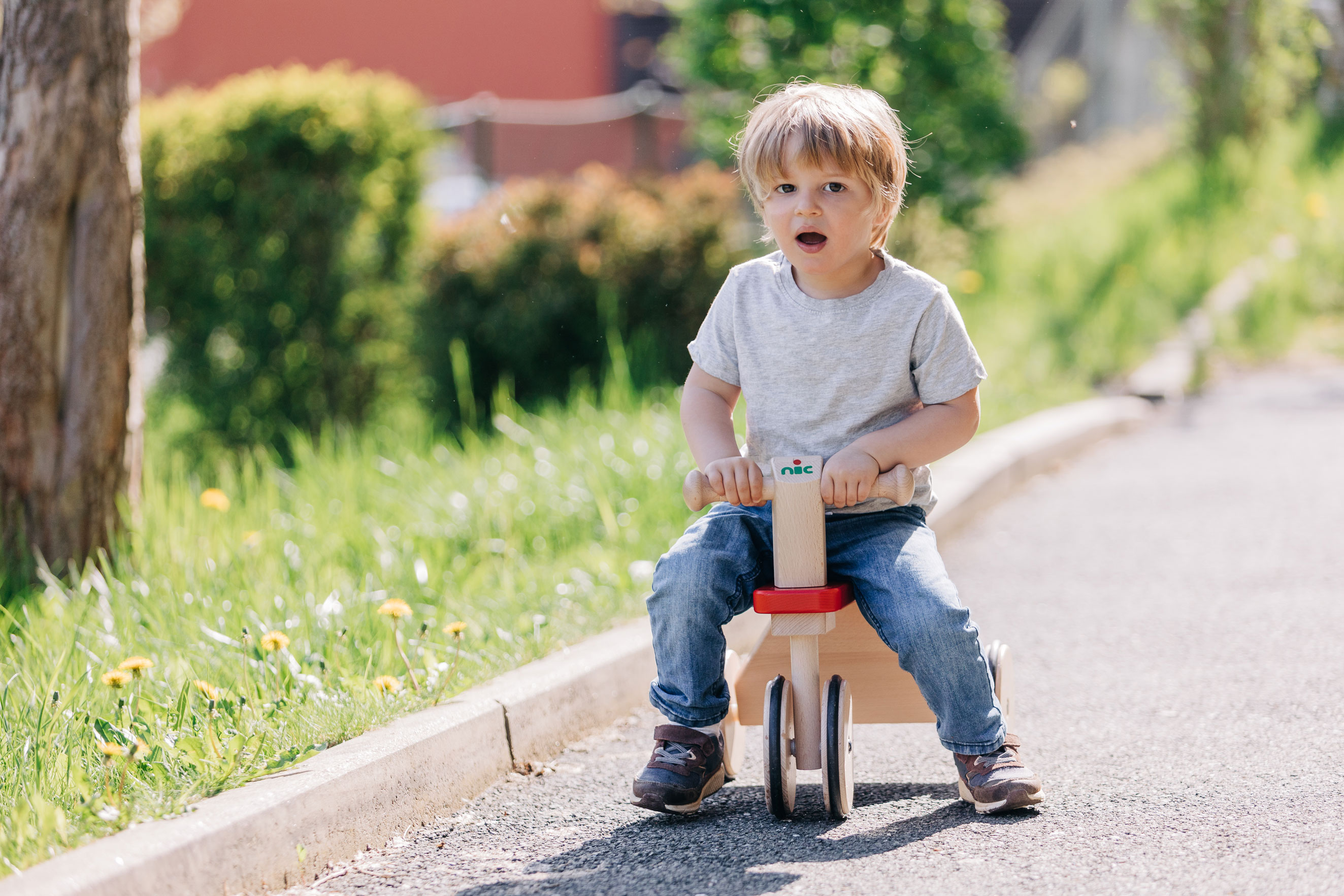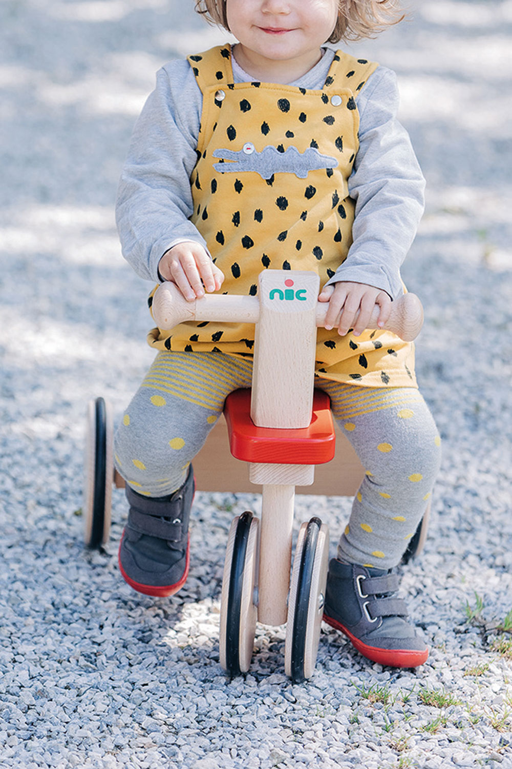 Robuster, zuverlässiger und sicherer Kinder-Rutscher mit Holzrädern, PE-Reifen für die Laufruhe sowie stabilen Stahlachsen. Der sportlich-klassische Kinder-Flitzer mit dem griffigen, weich abgerundeten, kindgerechten Lenkergriffen, ist aus massivem Buchenholz in aufwendiger und sorgfältiger Handarbeit gefertigt. Stabile Fahrzeuge aus gutem Massivholz sind beliebte und zugleich zeitlose Klassiker der Kindheit. Sobald Babys bzw. Kleinkinder selbständig auf- und absteigen können, ist die Zeit der Holz-Rutscher gekommen. Dann wird mit den Füßen Schwung genommen und die ersten Fahrten steigern sich rasch zu kleinen Rennen durch die Wohnung. Eine sehr gute, hochwertige Qualität der Kinder-Holzfahrzeuge sorgt dafür, dass diese kippsicher, stabil und unfallvermeidend sind. Die ersten Kinderfahrzeuge können Kinder jahrelang begleiten – solange, bis die Beine endgültig zu lang gewachsen sind. (Und selbst dann hat unsere Erfahrung gezeigt, dass große Geschwister sich manchmal noch ganz schön klein machen können, um wieder die Holzfahrzeuge ihrer frühen Kindheit in Betrieb zu nehmen. Gut, wenn die Holzfahrzeuge das durch ihre unverwüstliche Qualität und Stabilität „aushalten“ können.)