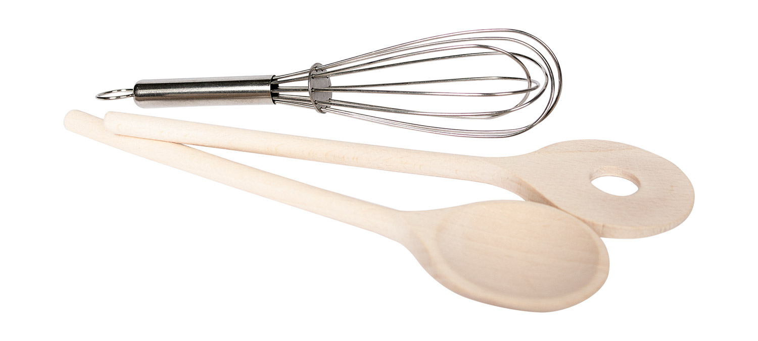 | Inhalt: | 3 Teile, (2 Holzkochlöffel ca. 18 cm lang, 1 Schneebesen ca. 15 cm lang) |