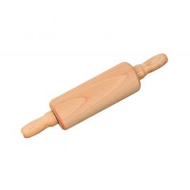 Glückskäfer-Zubehör für die Kinderküche: Teigrolle aus massivem Buchenholz mit Stahlachse, Griffe natur – auch zum „echten“ Gebrauch geeignet.