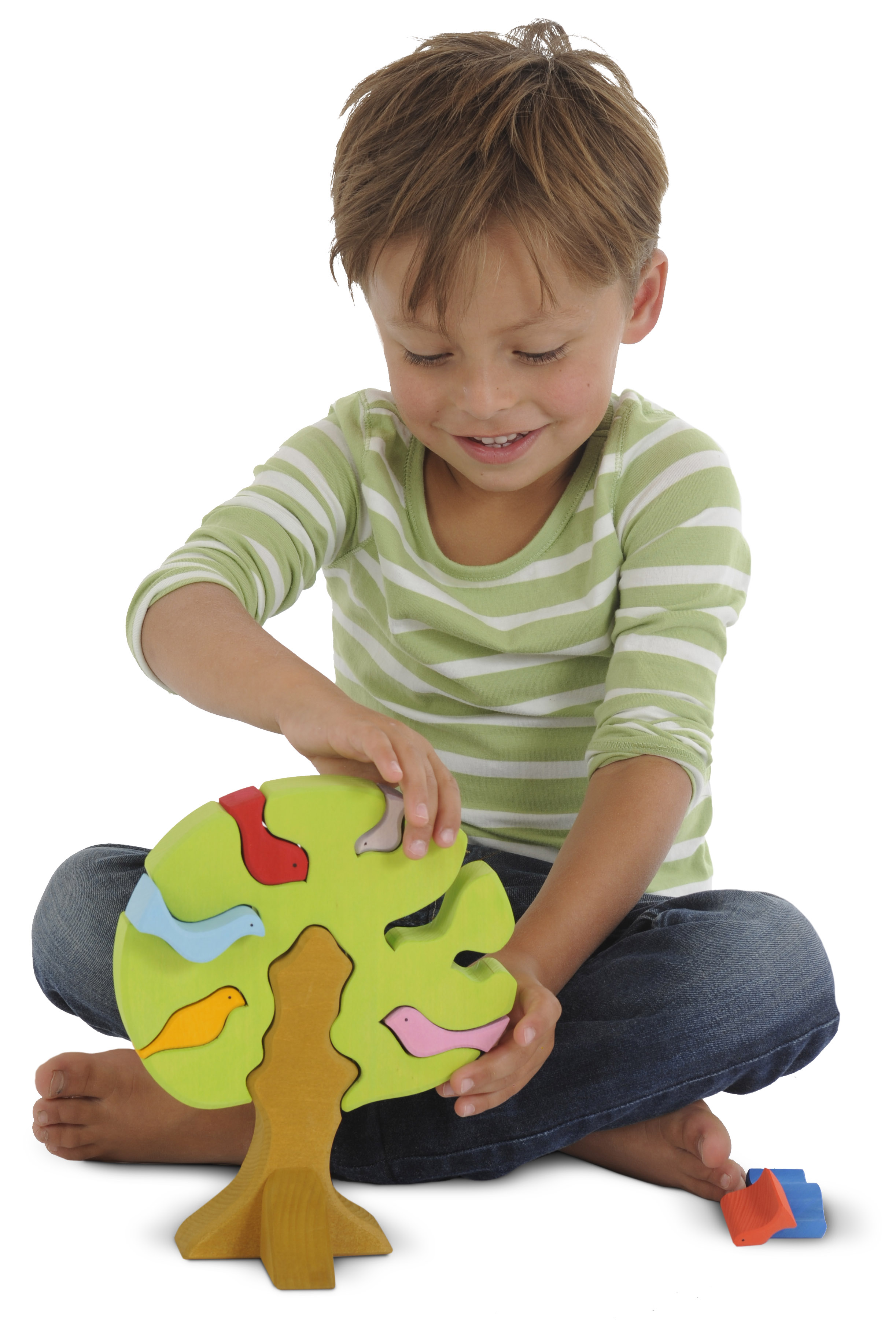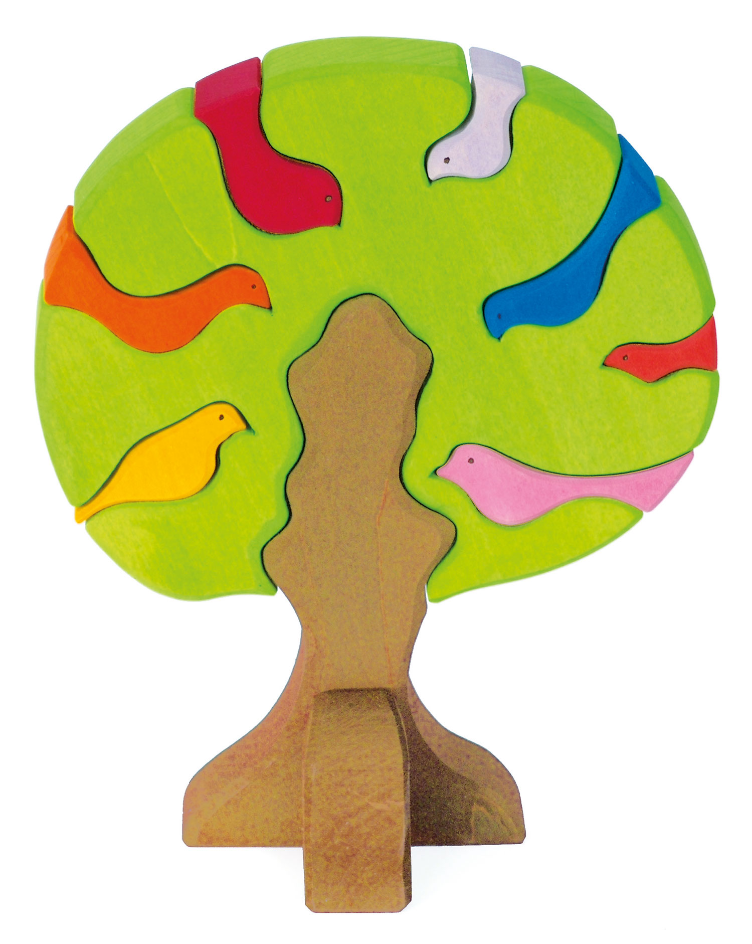 Welch eine Lebensfreude. Ein heller, lichter Frühlingsbaum, auf dem sich viele bunte Singvögel treffen. Was herrscht dort für ein lebhaftes Trillern und Jubilieren. Denn der Frühling hat Einzug gehalten und die Tage sind wieder strahlend hell und sonnendurchflutet.Das Holzspielzeug "Vogelbaum" ist nicht nur optisch ein wohltuender Augenschmaus, es ist auch ein wundervolles Spielzeug, das freilassend und kreativ ist. Der aufwendig und sorgfältig von Hand aus Holz gearbeitete Vogelbaum kann wie ein erstes Puzzlespiel in seine einzelnen 9 Teile zerlegt und wieder zusammengebaut werden. Die einzelnen Holzformen können aber auch für sich einzeln unabhängig von der vorgegebenen Form bespielt werden.Durch die unlackierten Holzoberflächen, bleibt die Maserung des schönen Lindenholzes gut sichtbar. Und das haptische Wahrnehmen des guten und wertvollen Wertstoffes Holz wird im Spiel sehr authentisch und naturnah erlebbar für unsere Kinder.Hochwertige, sorgfältig hergestellte Holzbausteine und Formenspiele aus guten Naturmaterialien sind ein pädagogisch sehr wertvolles und zeitloses Holzspielzeug für Kinder. Im fantasievollen, ruhigen Spiel der Kinder kann so aus den freien Formen immer Neues entstehen. Ganze Spielewelten, die zusammen mit Holztieren, Figuren und Püppchen, Dekorationstüchern und Naturmaterialien ausgebaut und kreativ erschaffen werden. Entgegen den Spielzeugen, denen ein fester Spielsinn bereits eingeschrieben ist, wird hier das Freie im Spiel der Kinder pädagogisch sanft gefördert und so dem kraftvollen Impuls des Erschaffens aus der eigenen Fantasie Raum gegeben. In diesem Rahmen ist es auch so wichtig, dem Spiel der Kinder den notwendigen Raum und die Ruhe zu gewähren. Nur wo Kinder ganz eintauchen können in ihr Schaffen, kann sich die große Kraft des kindlichen Spiels ganz entfalten. Und unsere Kinder in ihrer Entwicklung stärken und festigen.Und wenn einmal die Zeit gekommen ist, in der Kinder die ersten Holzspielzeuge hinter sich lassen, so sind die wunderschön gestalteten Formenspiele auch im Regal oder einem anderen geeigneten Platz eine warme, liebevolle Reminiszenz an die frühe Kindheit. Und erfreuen das Auge der Betrachtenden durch ihre wohltuende Farbgestaltung und harmonische Formgebung.